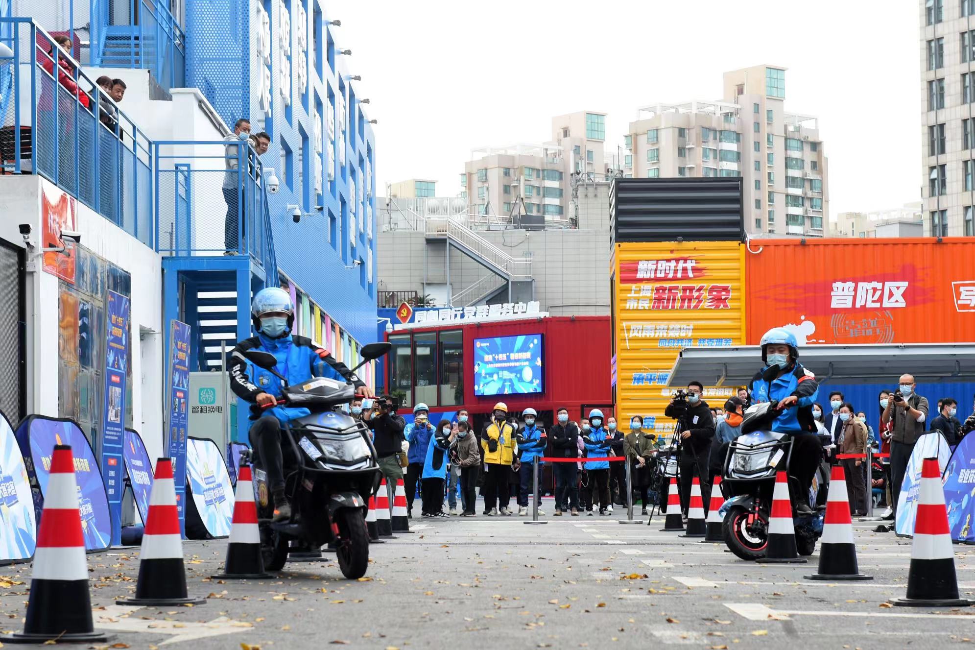 头图:上海市首届网约配送员职业技能大赛决赛在普陀区新业态新就业党群服务中心举行。