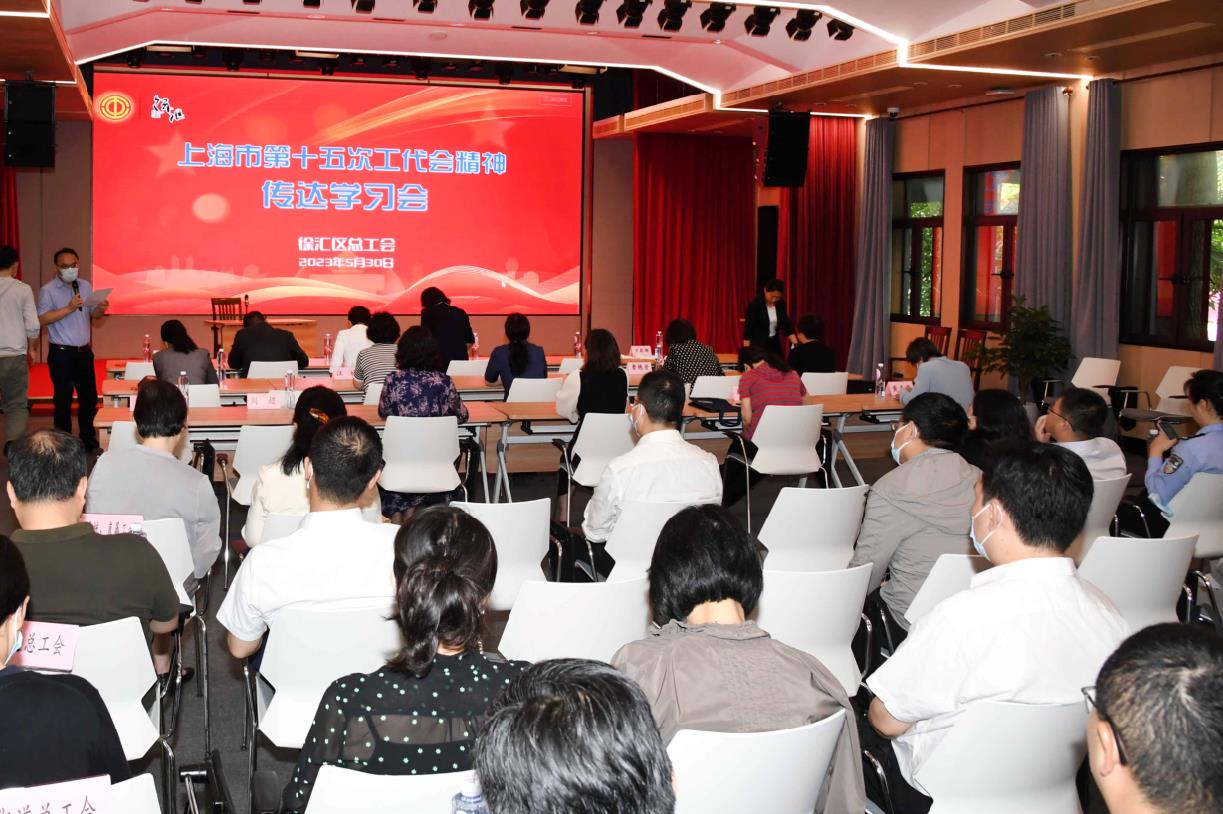 上海市工会第十五次代表大会是一次牢记嘱托、勇担使命,开新局、谱新篇的盛会,连日来,徐汇各级工会兴起学习宣传贯彻会议精神热潮,5月30日上午,徐汇区总工会在龙华烈士陵园报告厅举办上海市第十五次工代会精神传达学习会。区总工会两委委员、各街镇总工会、系统、集团和直属工会主席、副主席,区总工会班子成员,区总机关、下属事业单位人员及社工参加会议。