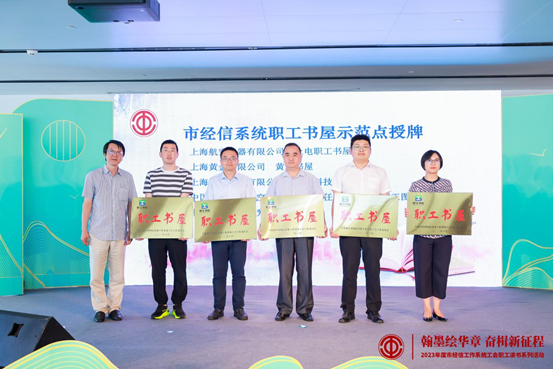 头图:启动仪式上,市经信系统工会为首批系统职工书屋示范点授牌。
