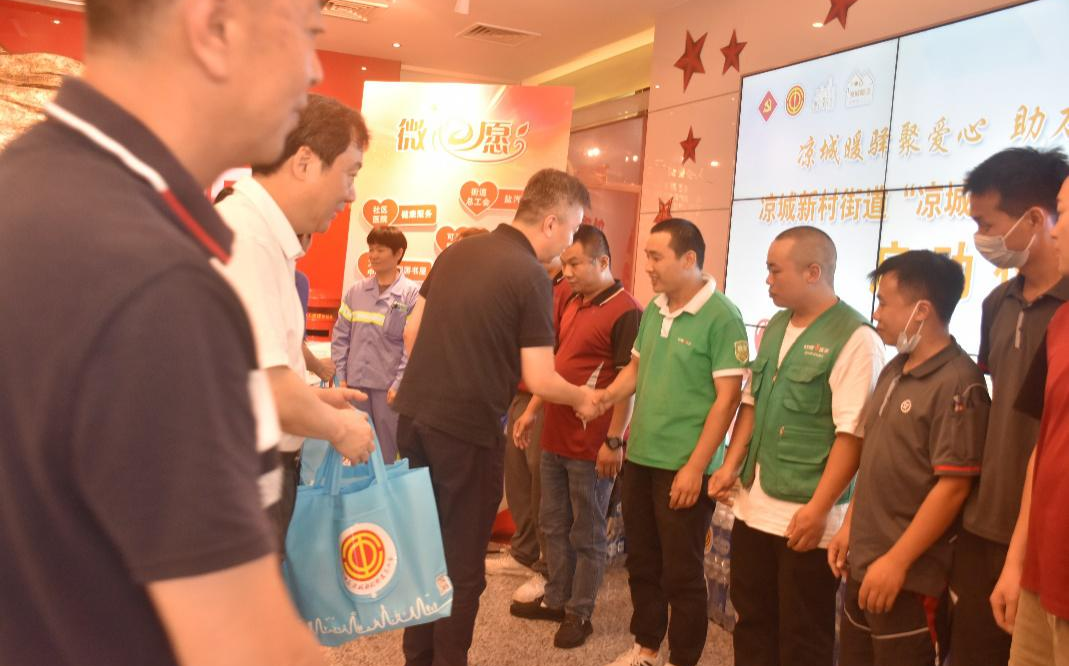 头图:凉城街道总工会为户外职工赠送防暑降温物品