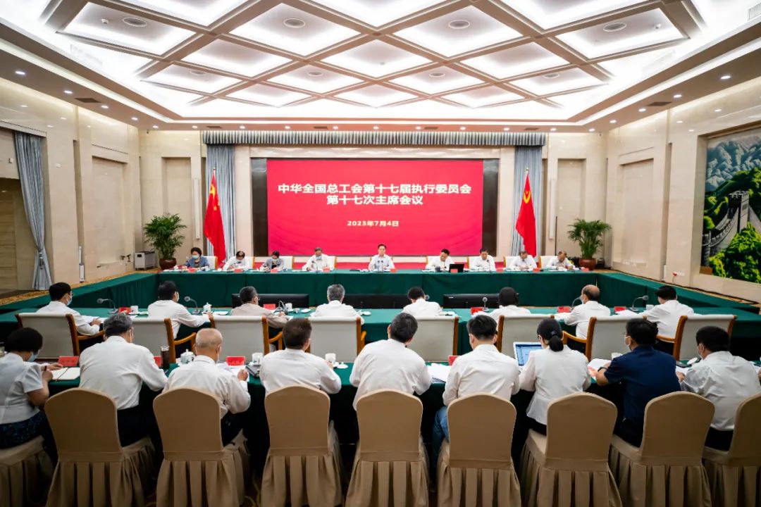 中华全国总工会第十七届执行委员会第十七次主席会议7月4日在京召开。会议听取全总机关学习贯彻习近平新时代中国特色社会主义思想主题教育开展情况、中国工会十八大筹备情况的汇报,研究部署当前及今后一个时期工会重点工作。全国人大常委会副委员长、中华全国总工会主席王东明主持会议并讲话。
