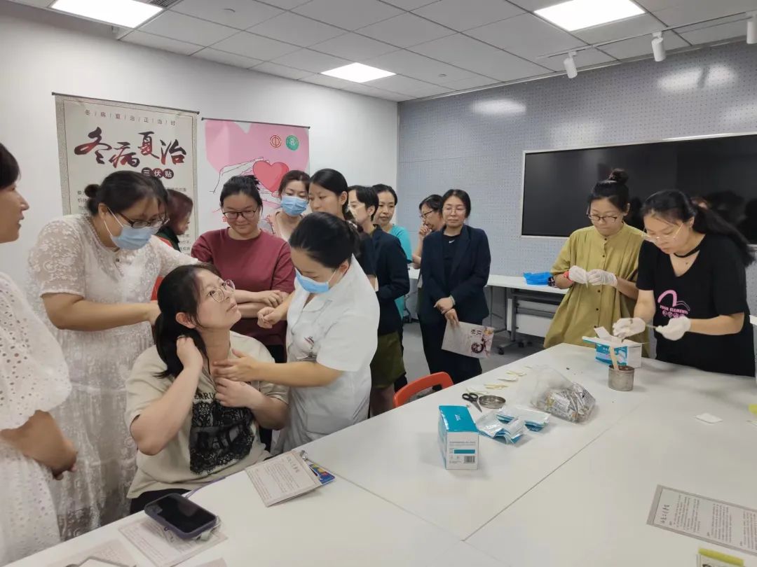 通过日常联络楼内企业工会,以及健康服务点定期接待白领职工的需求反馈,嘉兴路街道总工会对健康服务点的服务内容再次扩充升级,推出针对感冒、咳嗽和哮喘等多发症状的“三伏贴”冬病夏治项目。