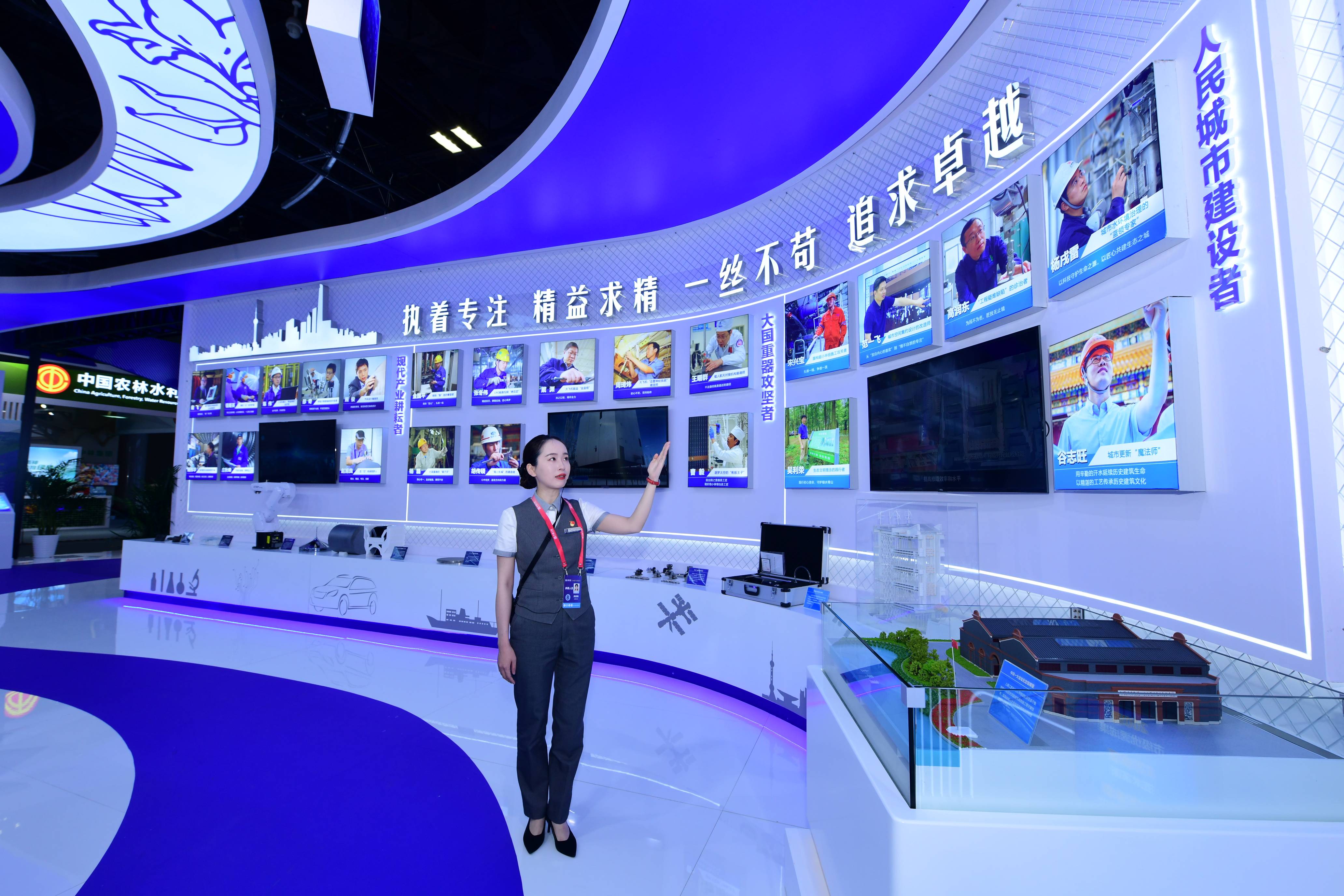 上海展区以“上海工匠,创新卓越”为主题,用三张图谱分别展示了上海工会在构建“工匠人才培养选树体系”、夯实“一线职工创新服务体系”、打造“上海工匠十大系列品牌”方面形成的机制和取得的成果,并设置“人民城市建设者、大国重器攻坚者、现代产业耕耘者、一带一路先行者、长三角大工匠助推高质量一体化”五个版块,展现各条线“上海师傅”到“上海工匠”“大国工匠”,用智慧和双手创造的一个又一个奇迹,以及上海各级工会推进产业工人队伍建设改革和工匠培养选树的工作体系和工作成果。