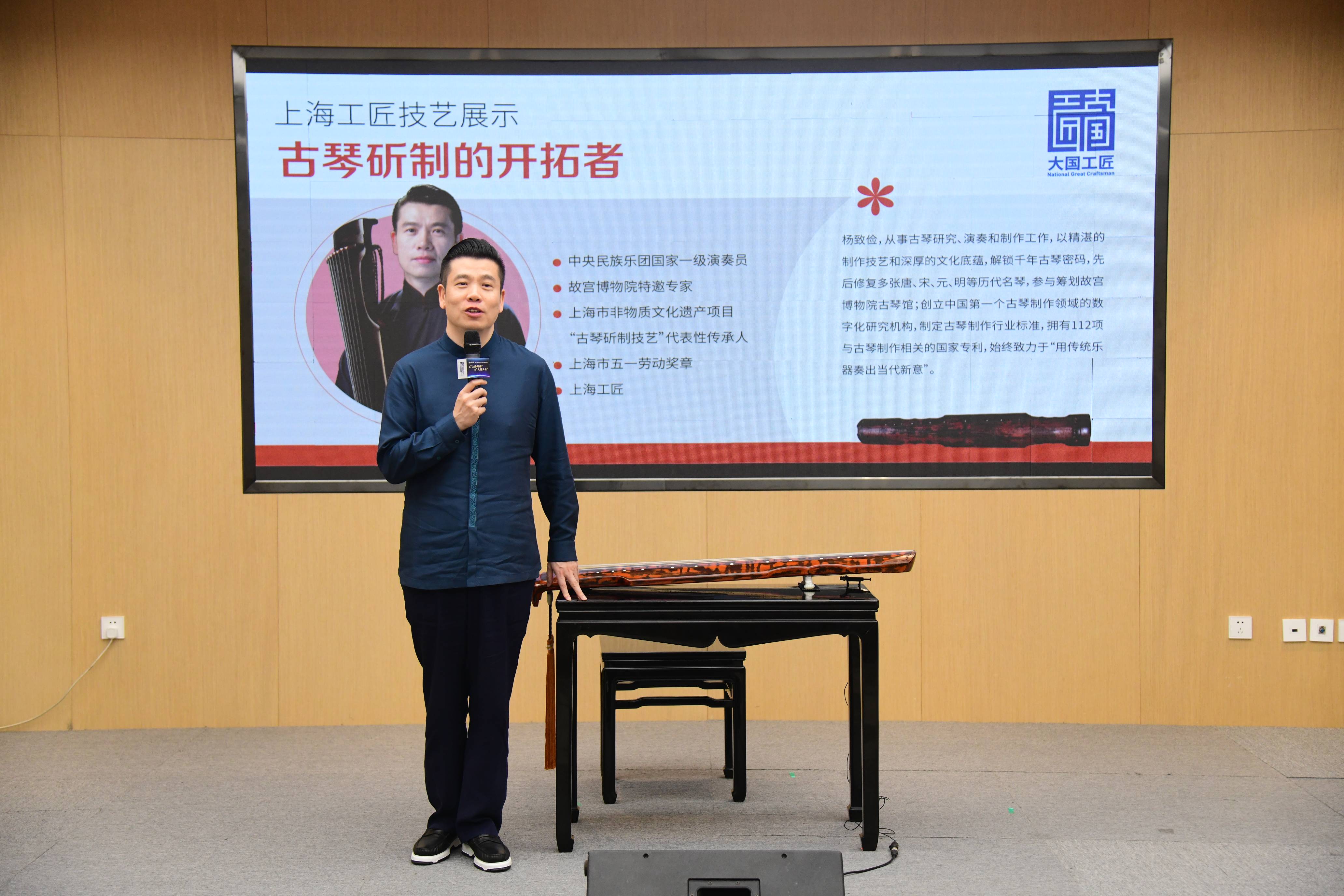 带着自己复制的唐代古琴九霄环佩琴,来自中央民族乐团的上海工匠、国家一级演奏员、故宫博物院特邀专家杨致俭在第二届大国工匠论坛上海分论坛上演奏了一曲《高山流水》,在场的观众近距离感受到了古琴的魅力与匠心。