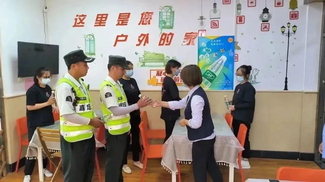 头图:嘉定区总工会携手爱心企业,为户外职工爱心接力站免费提供矿泉水。