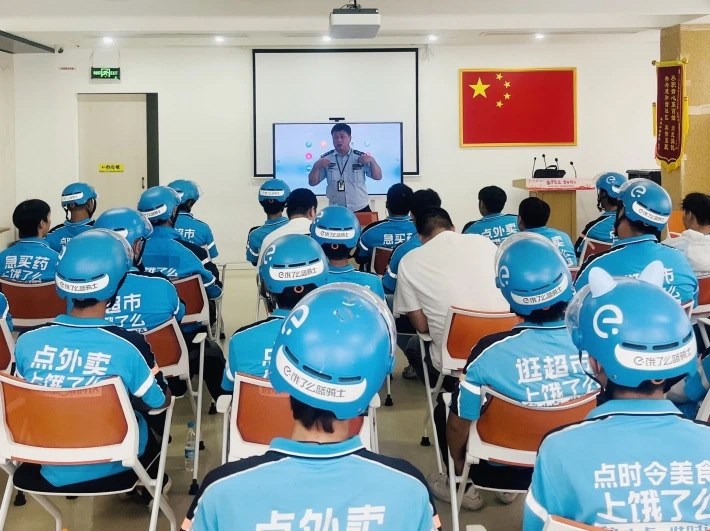 民警李云进行了反诈骗和交通安全宣传。他用深入浅出的语言,介绍了目前电信网络诈骗的常见套路,教会送餐员加以识别,避免受骗上当。同时提醒送餐员要切实增强交通安全意识,遵守交通法律法规,保障安全文明出行。