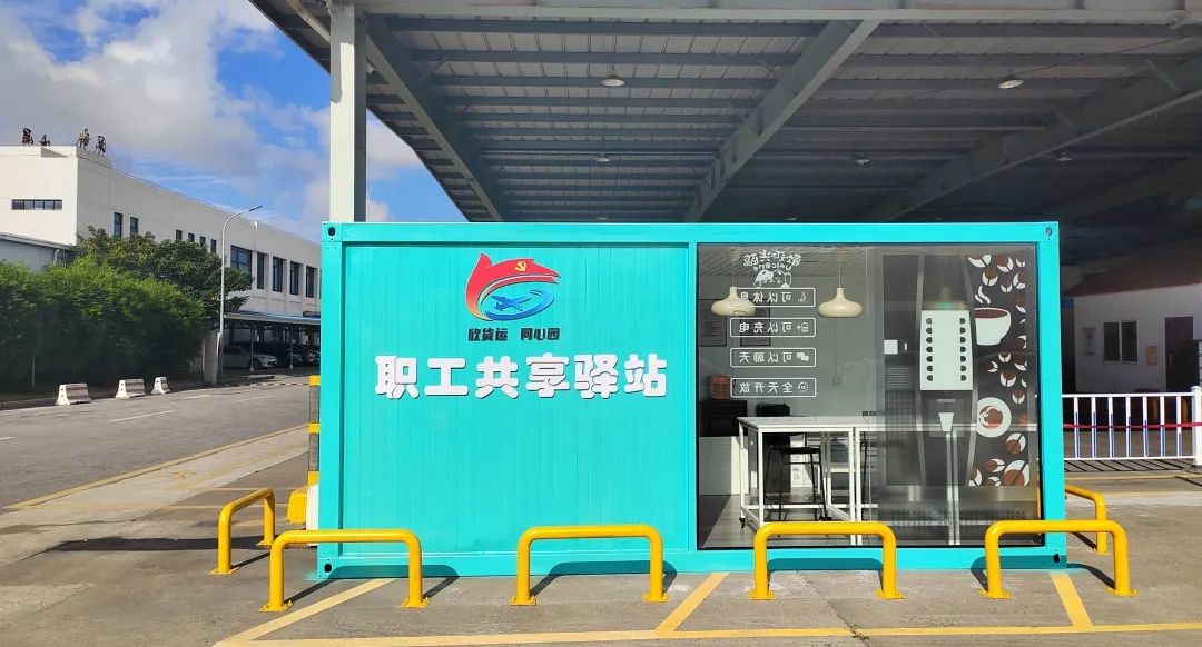 “职工共享驿站”坚持从实际出发,聚焦一监管仓内提货司机们“喝水难”、“吃饭难”、“躲雨难”等问题,配置持续完善,成为工作区内的小小“避风港”。坚持需求导向,全天开放、受众面广,可让等候提货的司机和区域内工作人员打个水、泡个茶、吃口饭,工作之余可以在“职工共享驿站”内小憩片刻,养足精神,安全行车。坚持长效运行,驿站内设有专人负责和保洁,设有管理制度,更有一线值班长、青年职工们积极响应,主动报名志愿服务,合力维护驿站“小家”的日常运行。