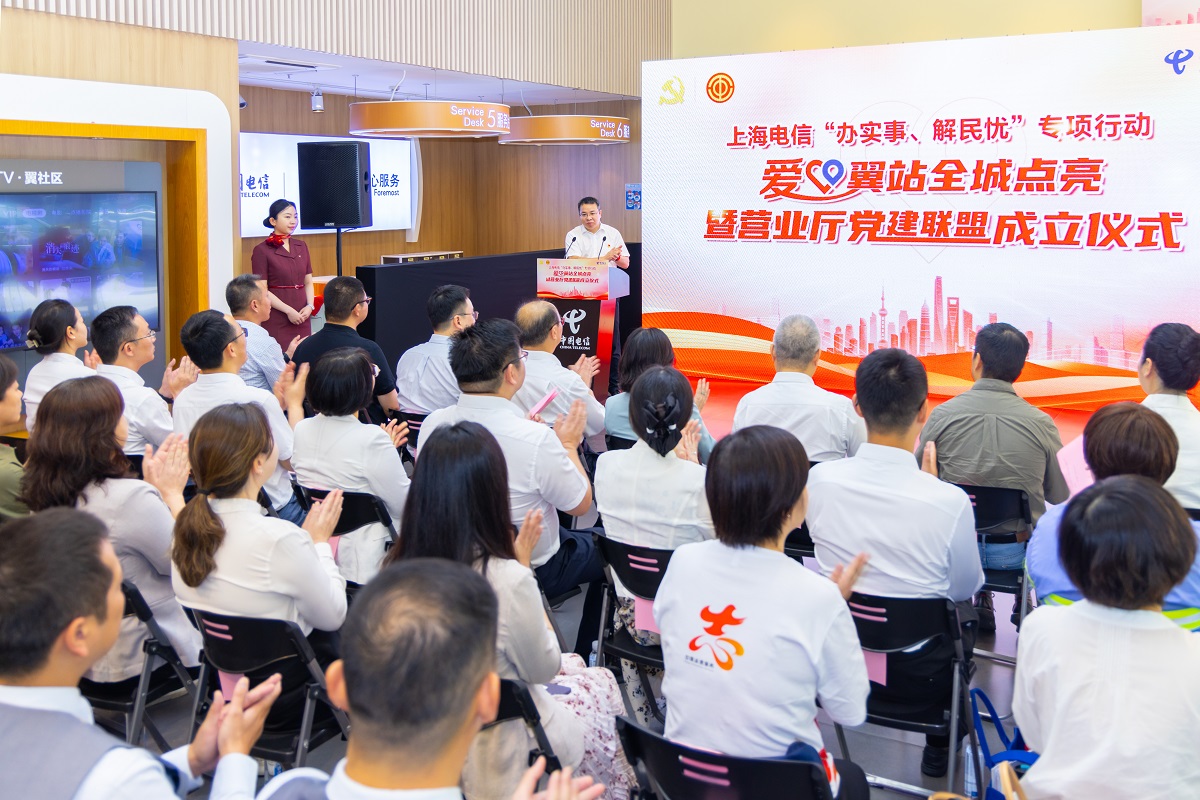 头图:上海电信“爱心翼站”全城点亮暨营业厅党建联盟成立仪式活动现场