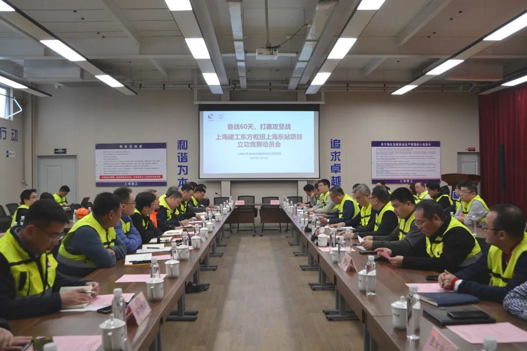 近日,上海建工东方枢纽上海东站项目召开“奋战60天,打赢攻坚战”立功竞赛动员会。上海建工总承包部副总经理、东站综合交通枢纽建设工程指挥部常务副总指挥黄淼,一建集团、七建集团、基础集团、机施集团等单位分管领导及项目管理人员参加会议。