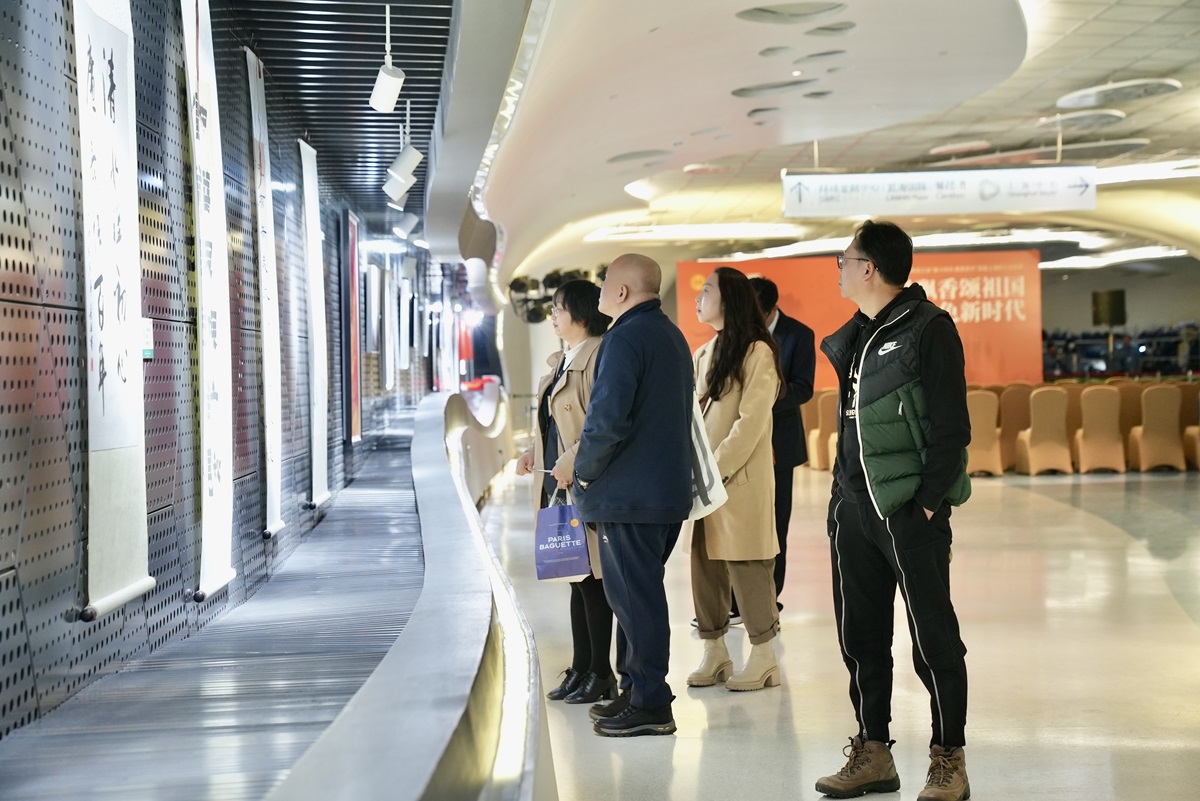 头图:在上海中心B2艺术长廊,职工三五成群正在欣赏上海城投职工书画展作品