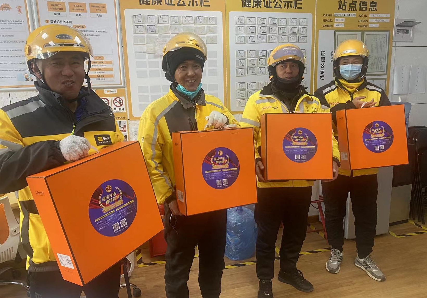 极兔速递站点负责人胡正平表示,自己是站点负责人,同时也是康健街道新就业形态劳动者工会联合会主席。一方面要尊法守法,对配送员的管理要依据法律法规和劳动制度,特别是对配送员的处罚不能“随心所欲”。另一方面,配送员对考核和报酬等有异议时,要及时“说法讲理”。骑手小繆表示,街道发放的宣传品是真皮护膝,非常实用,而且张贴了热线电话、职工法律服务站的地址和联系电话,还有扫码入会的二维码、微信公众号,“我刚发到朋友圈,马上有骑手来问,他能不能扫码入会。”建筑工地的施师傅拿到了1000ml规格的真空旅行壶,他表示,这份宣传品很有用,自己从脚手架上下来,随时有热水可以喝,而且水壶上张贴的法律服务热线和详细地址,让自己干活更加有底气。