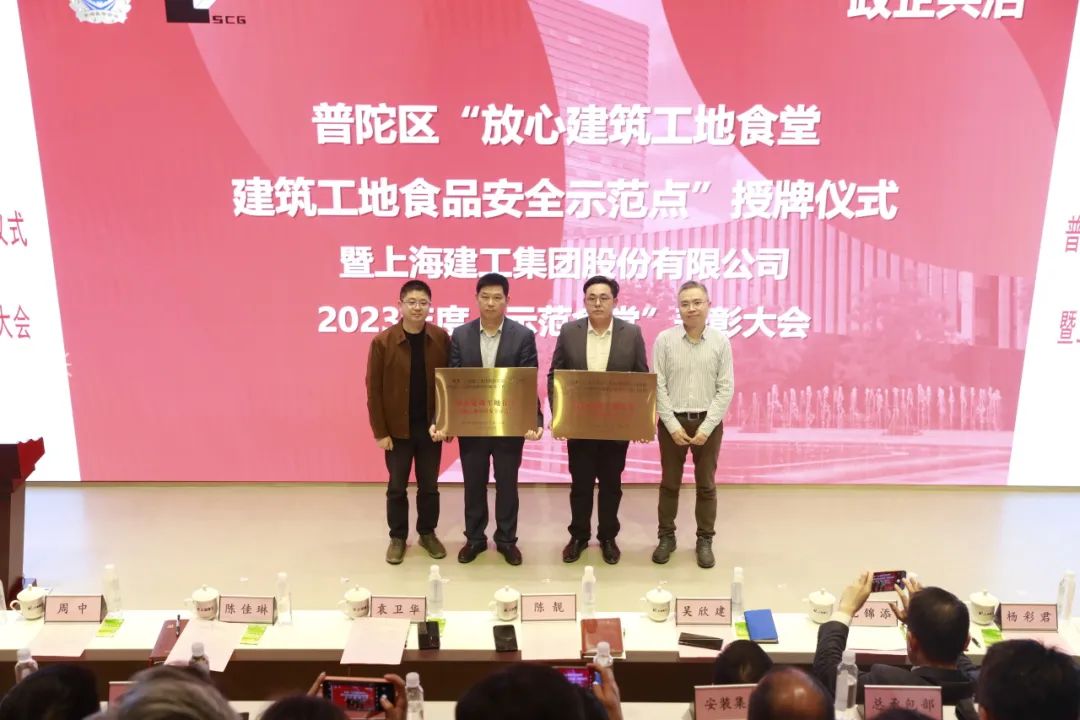 昨天下午,普陀区“放心建筑工地食堂,建筑工地食品安全示范点”授牌仪式暨上海建工2023年度“示范食堂”表彰会在上海建工长三角一体化绿色科技示范楼举行。会上,上海建工桃浦603地块项目食堂、桃浦初期雨水调蓄工程TP1.2标项目食堂,荣获了普陀区“放心建筑工地食堂 建筑工地食品安全示范点”称号,同时,62家上海建工食堂班组也获得了2023年度集团“示范食堂”的荣誉。