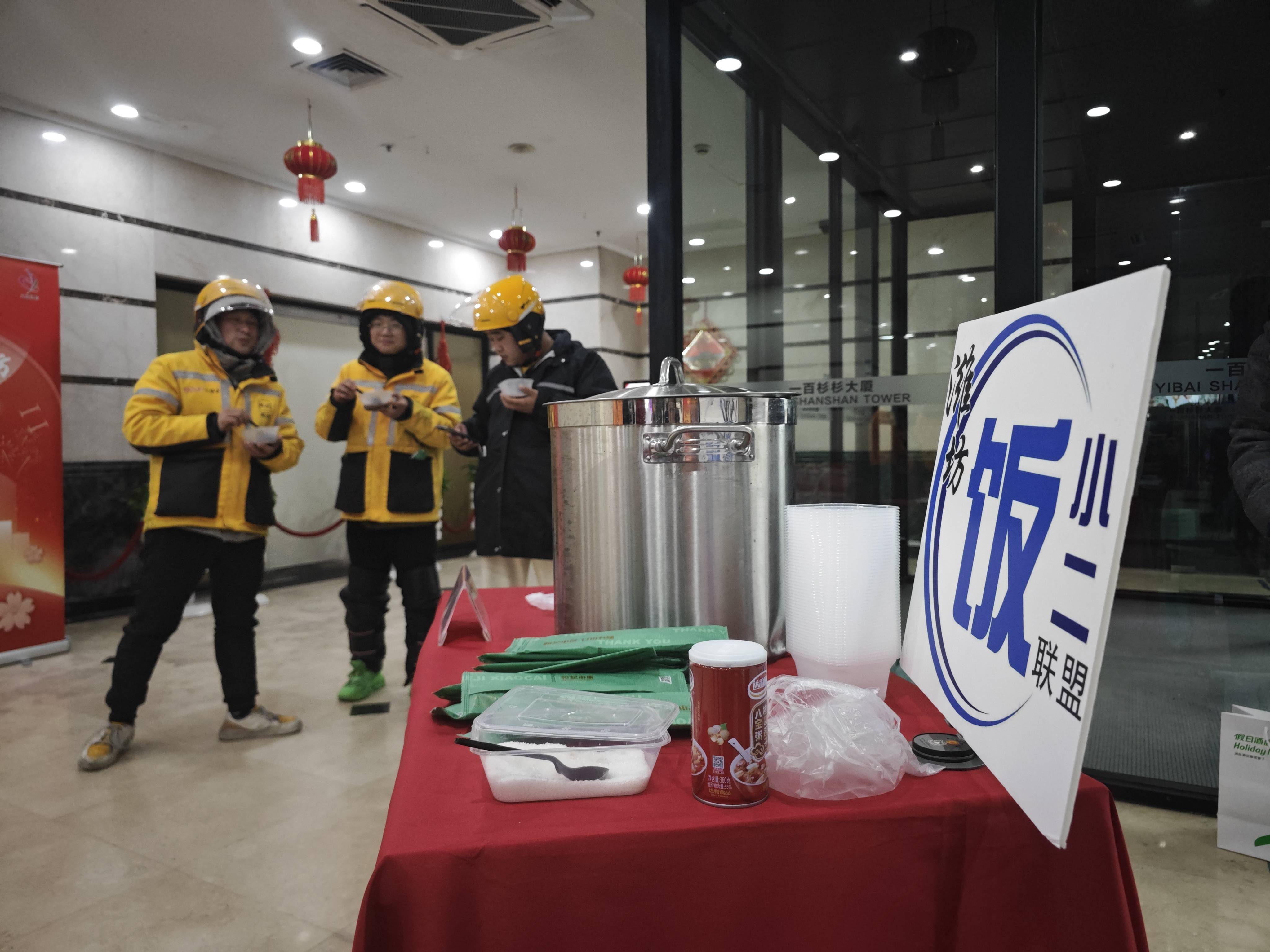 一碗腊八粥,甜在嘴里,暖在心头。今天下午1点,在位于一百杉杉户外爱心接力站外的大楼大厅里,潍坊新村街道总工会开展迎新春送温暖户外职工慰问,来表达对常年奋战在一线的户外职工的新春慰问,为户外职工以及其他留沪过年职工送上了别开生面的服务活动。