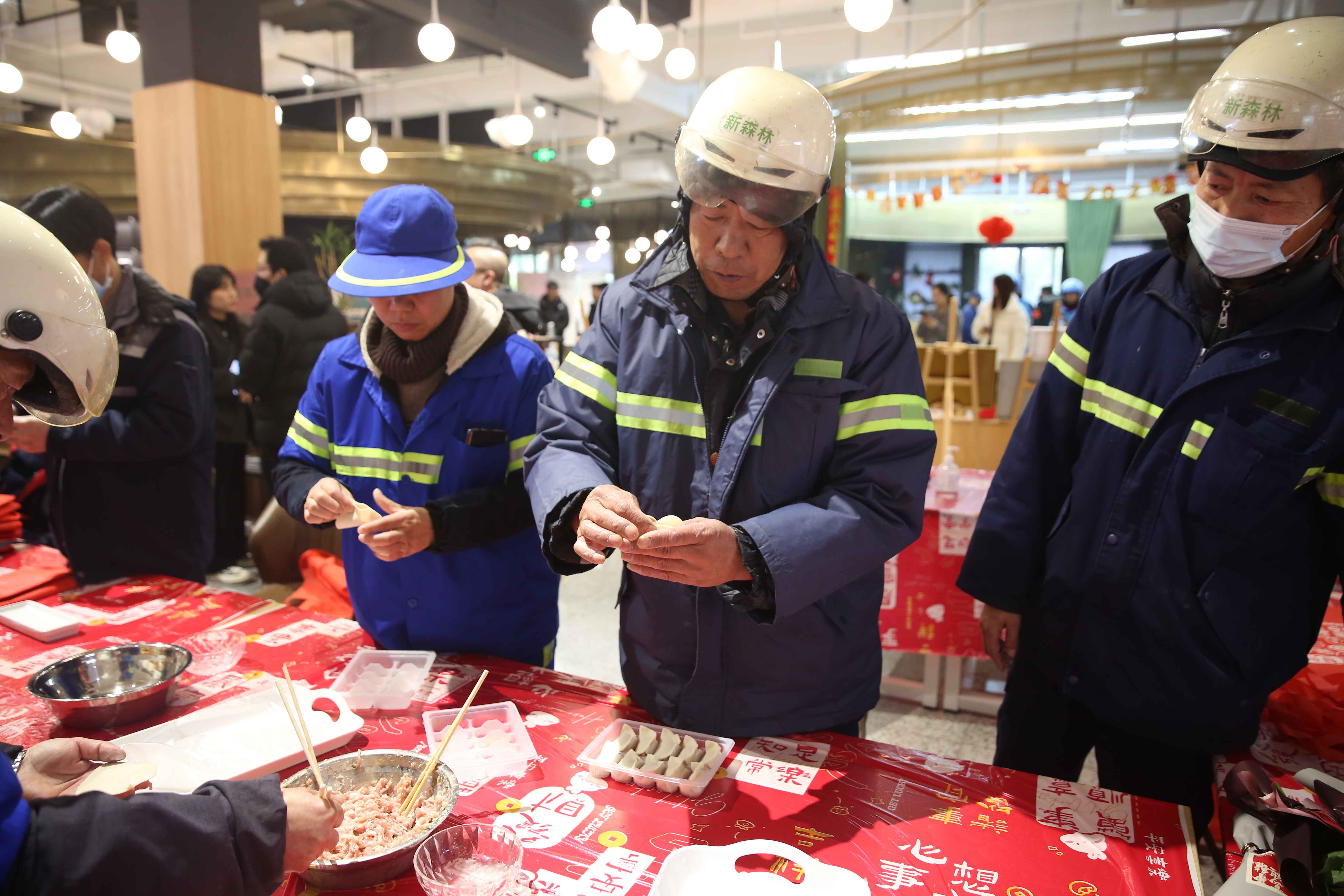 现场吸引了外卖小哥、快递小哥、保安、环卫工人等户外工作者50人参加,他们在龙门背景下打卡拍照,写下龙年心愿,和老师一起包饺子、和书法达人一起写春联、和手工艺人一起剪窗花,共同感受春节的喜庆氛围。现场工作人员为他们赠送了手捧鲜花,感谢他们一年的辛勤工作和艰苦劳动。