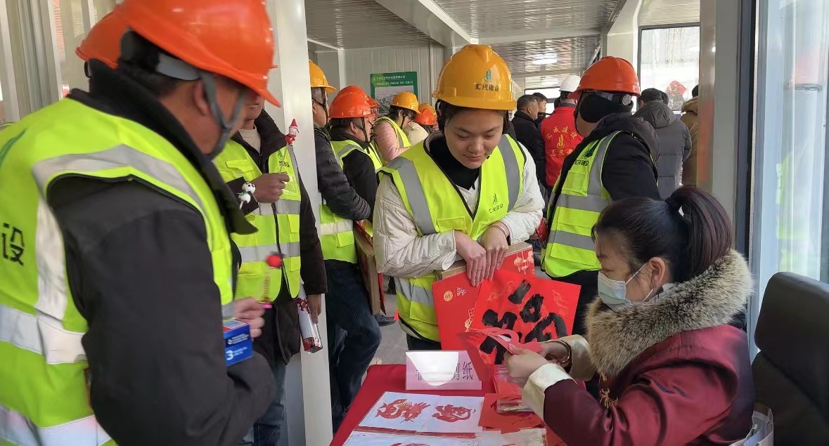 连日降温,寒风凌冽,项目基地的欢声此起彼伏,“情暖工地,喜迎龙年,为城市建设者送温暖”,拿张福字、做回体检、领个中国结,工友们在节日的氛围中感受徐汇区关怀的温度和力度,与活动主题交相辉映。