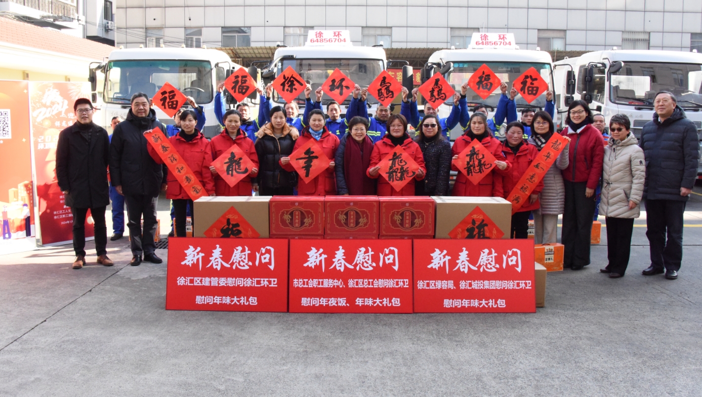 今天,“龙腾四海迎新春 喜气洋洋贺新年”活动举行,上海市总工会职工服务中心、徐汇区总工会来到徐汇环卫公司基层工作站点,对春节期间留沪工作的环卫职工进行专场慰问。
