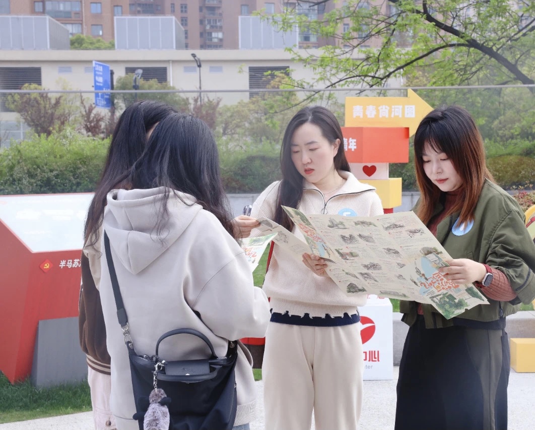 活动伊始,在普陀区的半马苏河公园,青年职工们在“半马苏河、工运记忆”集中导览屏前打卡拍照,留下美好瞬间。普陀区总工会为职工们送上了“半马苏河、工运记忆”红色工运地标寻访地图,发出了春日寻访的邀约,引领青年职工们去探索那些沉淀了工运故事的红色记忆。职工们在“你画我猜”、“东南西北跑”等互动游戏中增加了默契,在欢声笑语中一决胜负。大家以小组为单位,一边吃着餐点、一边畅聊活动中的感受,增进彼此间的了解和沟通,并相约春日骑行共同寻访红色工运地标、感受普陀之美。
