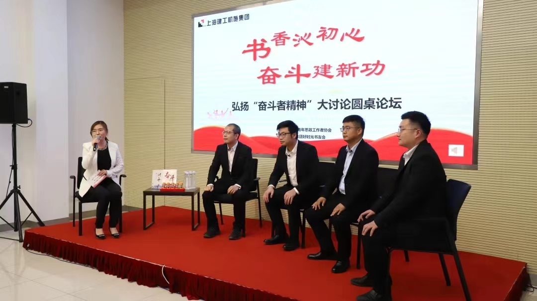 在世界读书日到来之际,上海建工机施集团举行了弘扬“奋斗者精神”大讨论圆桌论坛,四名优秀青年职工作为嘉宾上台,契合“世界读书日”的主题,各自分享了一本与“奋斗”有关的书籍。在娓娓道来中,四位青年职工也讲述了自己奋斗的故事和对奋斗的感悟。