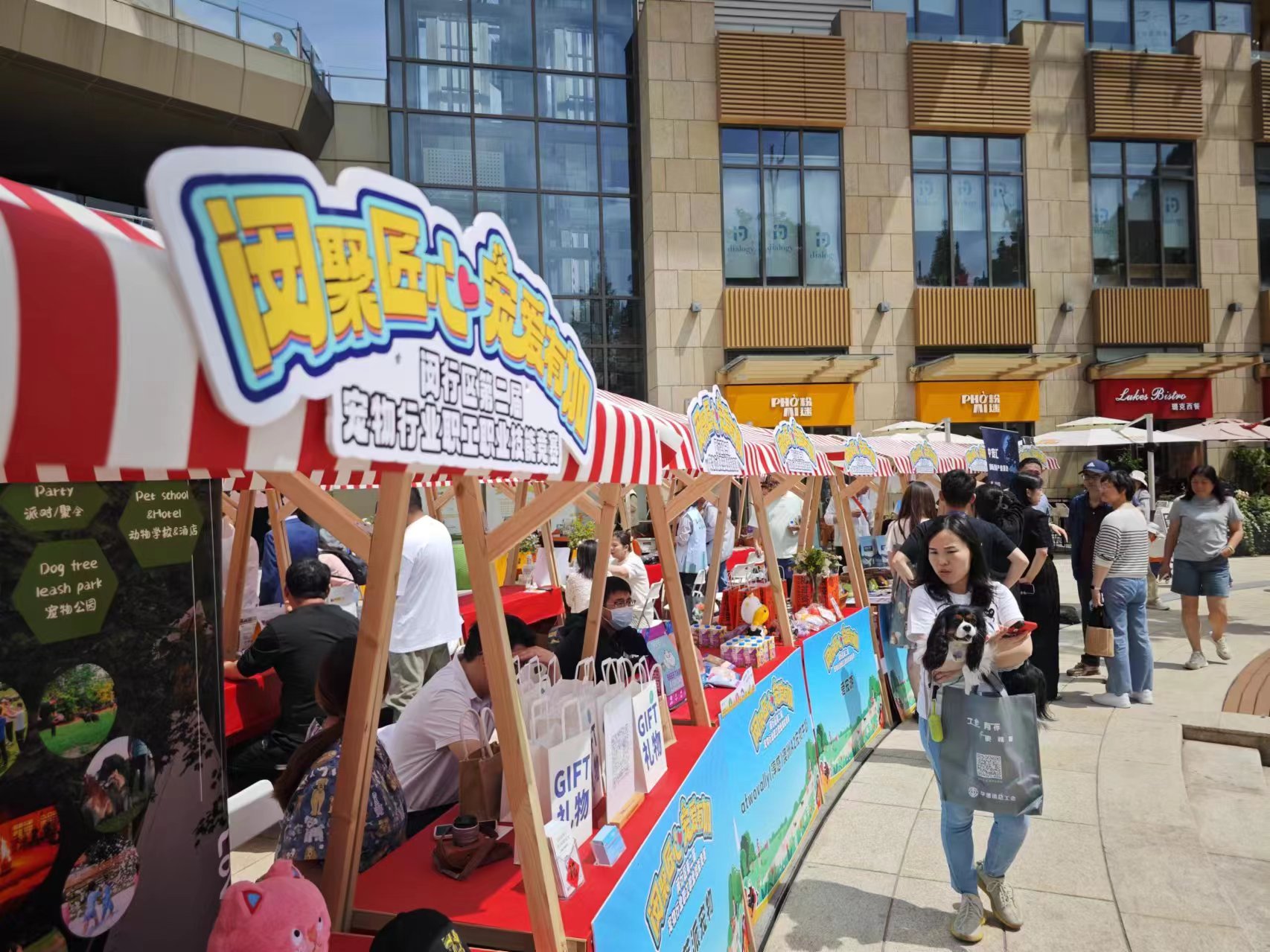 图片说明:现场设置的商户摊位,吸引了不少宠物爱好者驻足。