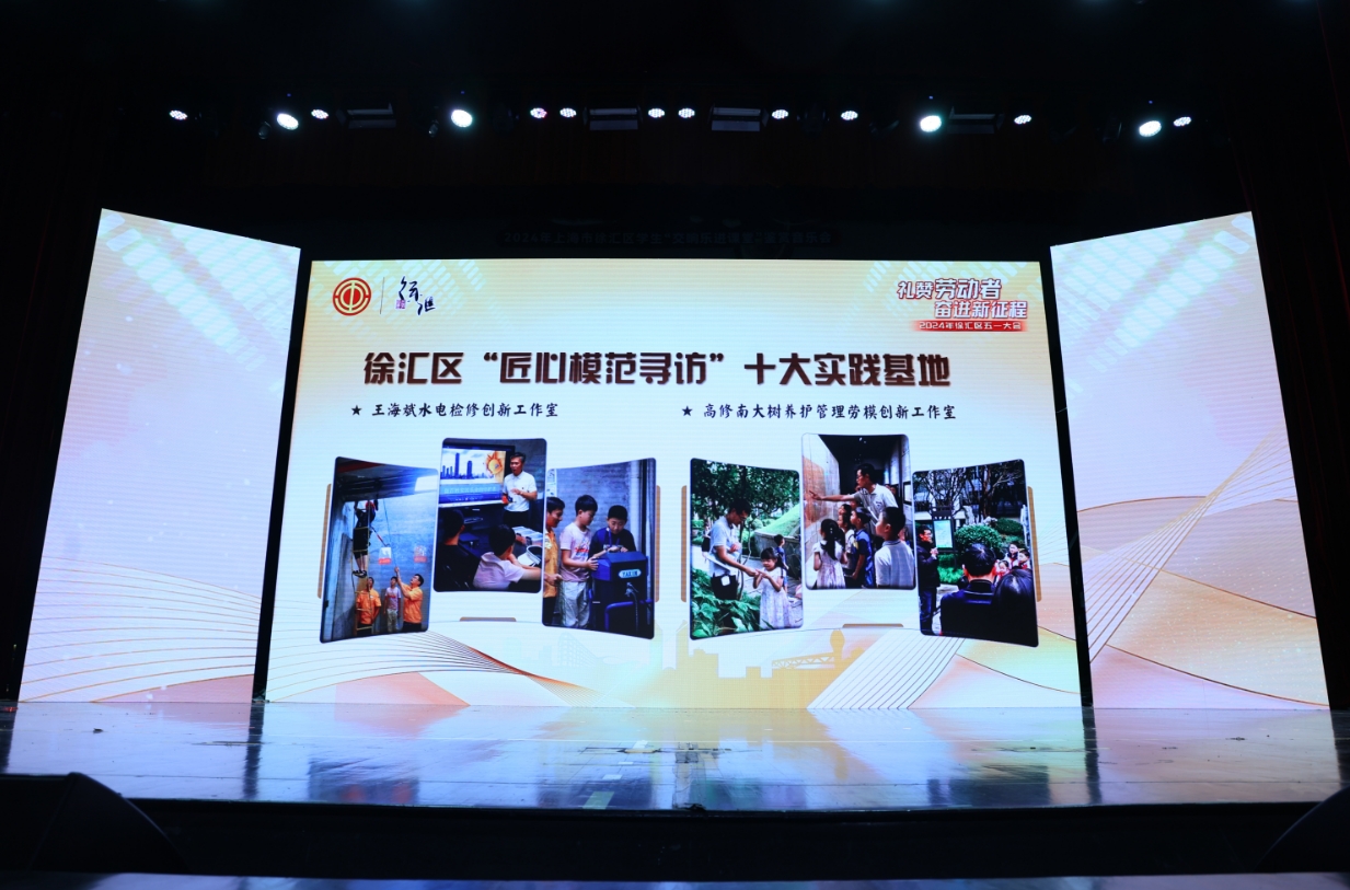 本次大会也是2023年以来徐汇区工会系统工作成绩全方位的汇报展示,全国推动厂务公开民主管理工作先进单位、全国最美工会户外劳动者服务站点、全国工会职工书屋示范点等全国级荣誉等受到表彰。值得一提的是,全国总工会“劳模工匠进校园”活动中,徐汇区“匠心模范寻访”是上海唯一创新案例奖。表彰会上发布了十大实践基地,未来,10个市级劳模、工匠、职工创新工作室,将继续成为全区广大职工群众,大、中、小学生走近劳模、走近工匠的基地。