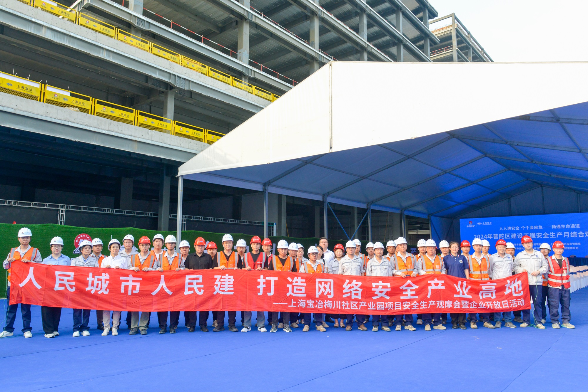 6月13日,上海宝冶梅川社区W060901单元A15b-01地块产业园区项目举办安全生产月综合观摩会暨“人民城市人民建 打造网络安全产业高地”企业开放日活动。