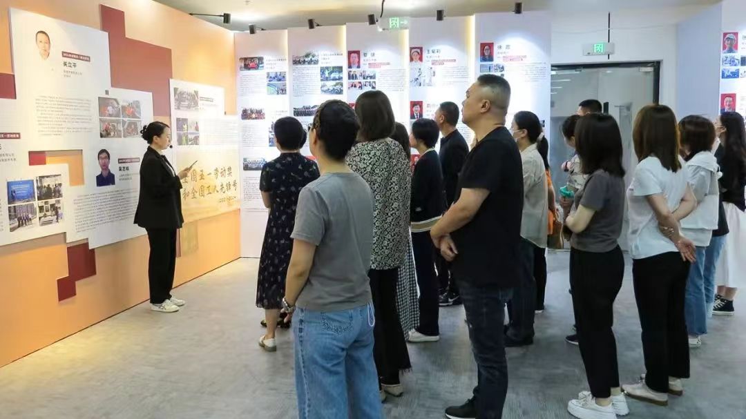 为进一步弘扬劳模精神、劳动精神、工匠精神,致敬青浦区各行各业的劳模工匠,6月20日下午,徐泾镇人大副主席、总工会主席王永飞带队基层工会干部代表,前往青浦区工人文化宫参观青浦区劳模工匠风采主题展,近距离感受劳模精神。
