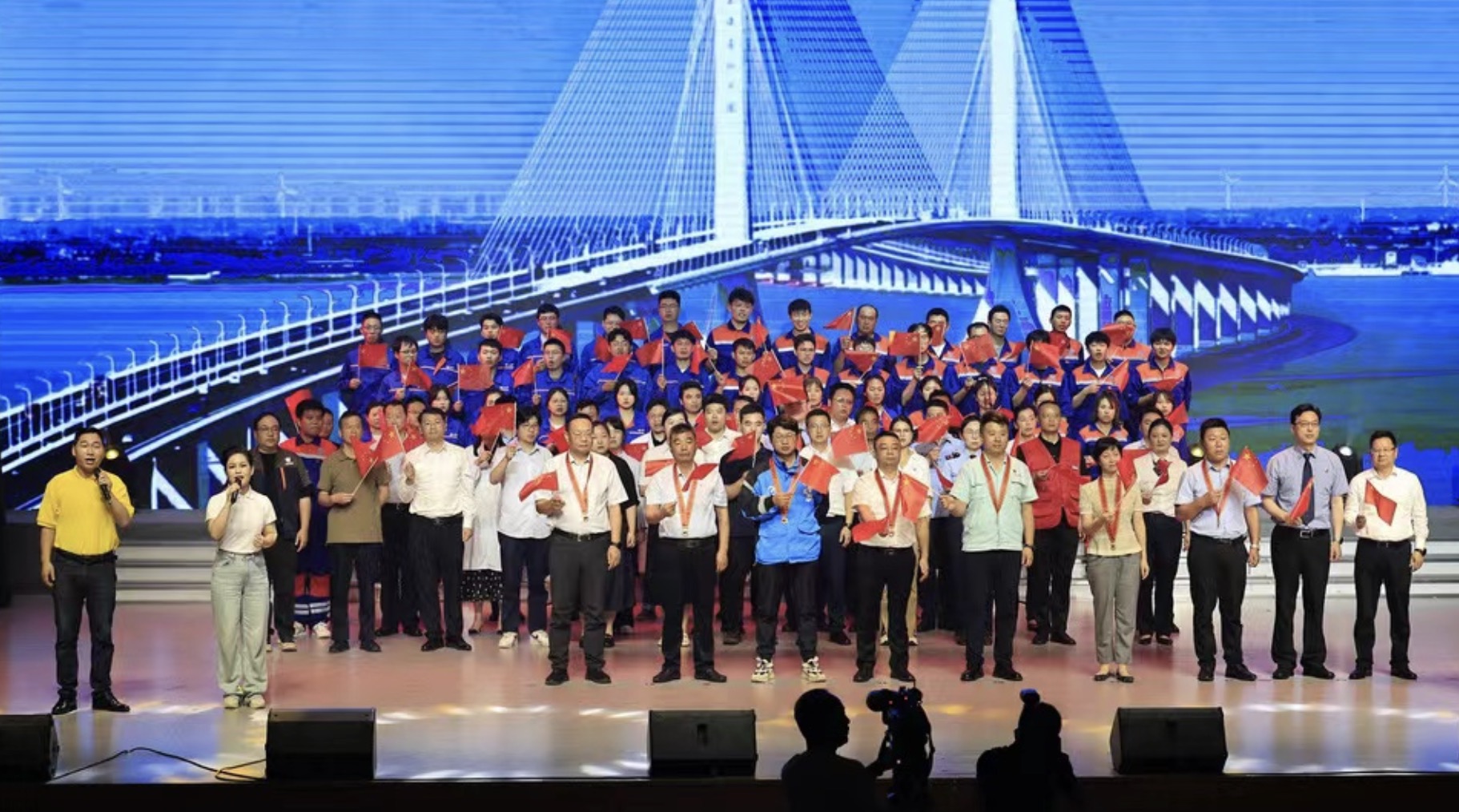 “奋斗,永远在路上。”当天,全国五一劳动奖章获得者、上海港机新科技集团有限公司党支部书记、工程部经理王敏惠的故事也被搬上了舞台。讲述者用深情地讲述,道出了王敏惠内心深处的港机情怀。王敏惠从港机码头一线做起,不断进行发明创造,突破“卡脖子”技术问题,为国内的隧道内大型构件安装闯出了一条新路,用拼搏和奋斗谱写了一曲扎根制造业、服务实体经济的匠人诗篇。