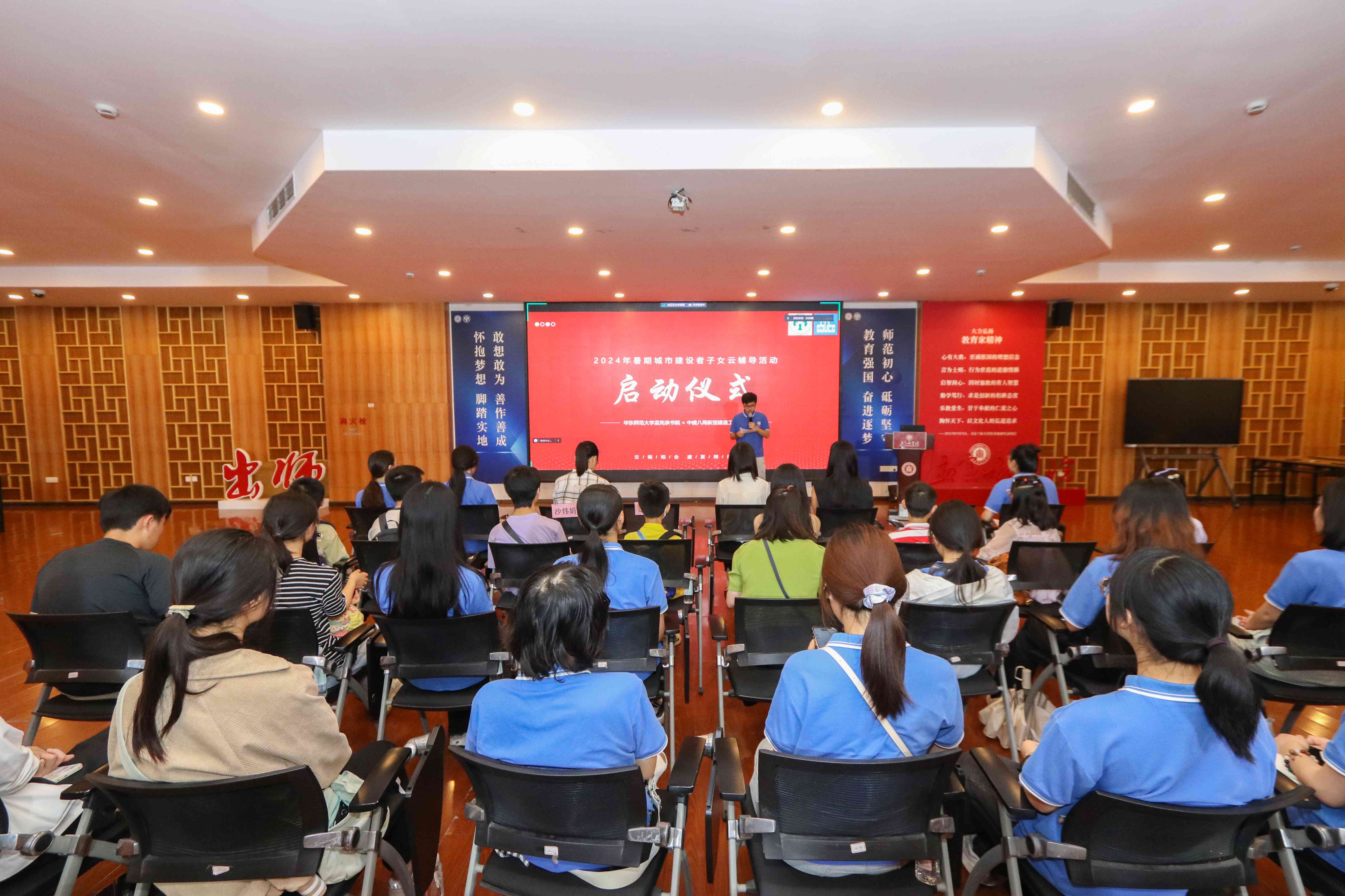 今年,云辅导活动首次走进华东师范大学,志愿者老师和职工子女们第一次线下见面,中建八局新型建造工程公司工会、职工和子女代表,华东师范大学孟宪承书院师生代表30余名“网友”们共同观看了爱心云辅导回顾视频。