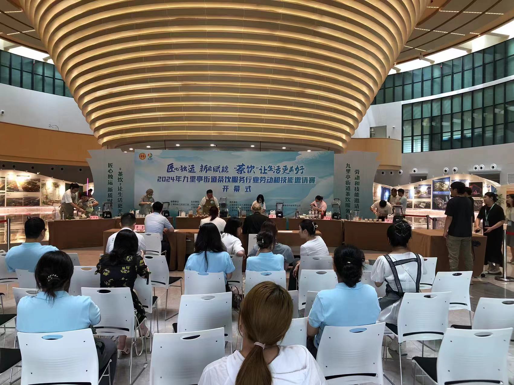 “匠心独运,新质赋能‘茶饮’让生活更美好”,经过两天的比拼,2024年九里亭街道茶饮服务行业劳动和技能邀请赛在松江区工人文化宫落下帷幕。来自松江区18个街镇(经开区)的茶饮品牌企业职工、茶饮爱好者等48名参赛选手集聚一堂,共同切磋茶饮技能,同台展示茶艺风采。