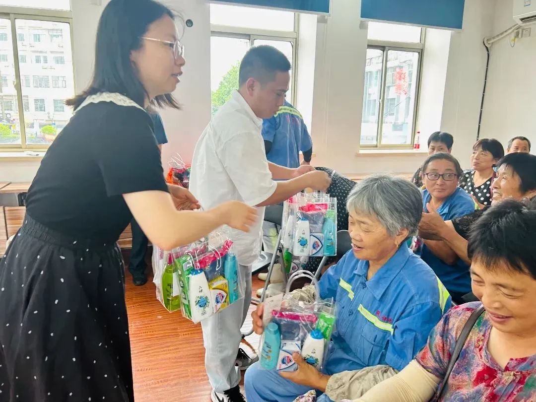 头图:青村镇总工会为户外职工送清凉文化礼包