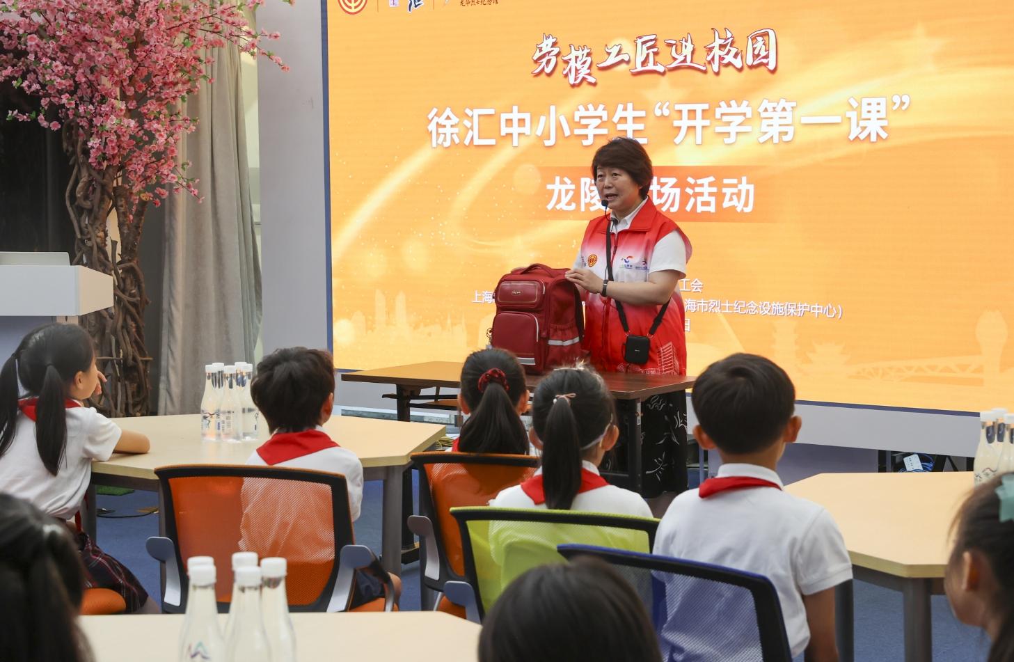 2024年秋季开学之际,徐汇区总工会、徐汇区教育局、龙华烈士陵园(纪念馆)联合主办的“开学第一课”今日开课。全国劳模苏嵘、市劳模余美香等劳模工匠携手小小志愿者,为徐汇区中小学的155名学生带来了四场精彩讲解。全国五一劳动奖章获得者胡志红、徐汇区劳模董梁走进龙陵,准备了一堂“劳动教育课”,活动集德育、美育、劳动教育“三育”融合。