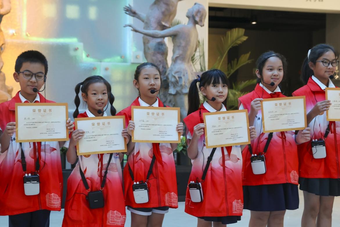 今年,徐汇工会将“开学第一课”的讲台搬进龙陵,劳模工匠从校园走向校外,搭档他们的小小讲解员一同为观众讲解。“小讲解员可以用同龄人的语言让大家感悟龙华英烈的精气神。”苏嵘感慨,学生给学生讲解的方式更有说服力。随着项目的发展,小小讲解员们也成长飞速。世外小学的学生申莃羽从项目之初就与市劳模余美香搭档学习,一次次的讲解之旅让两人结下了深厚的友谊。申莃羽也正式成为了“跟着劳模做志愿”龙陵志愿者讲解团的一员,拥有了自己的姓名铭牌。与她同样“志愿者试用期”期满的还有17名中小学生。
