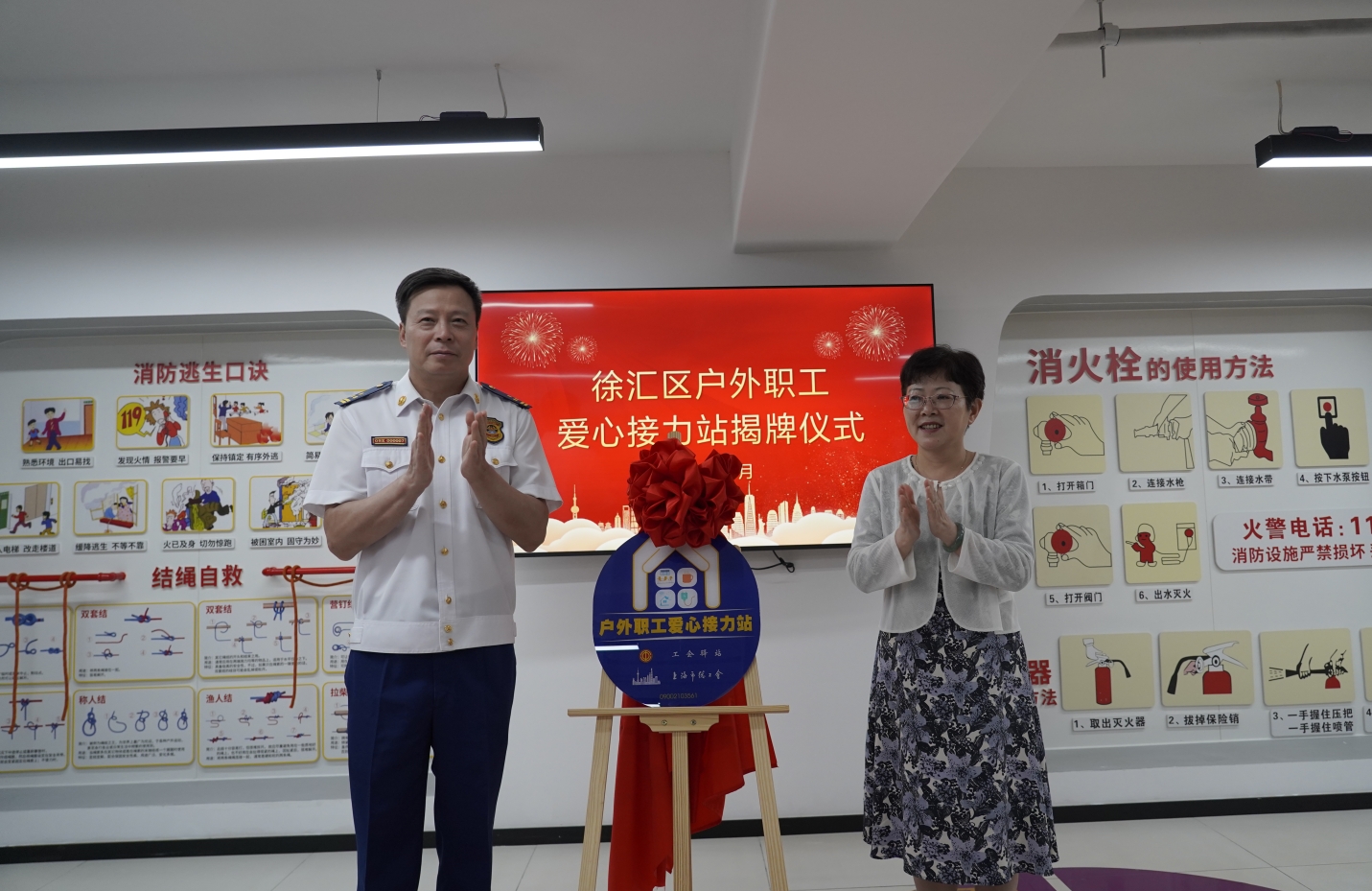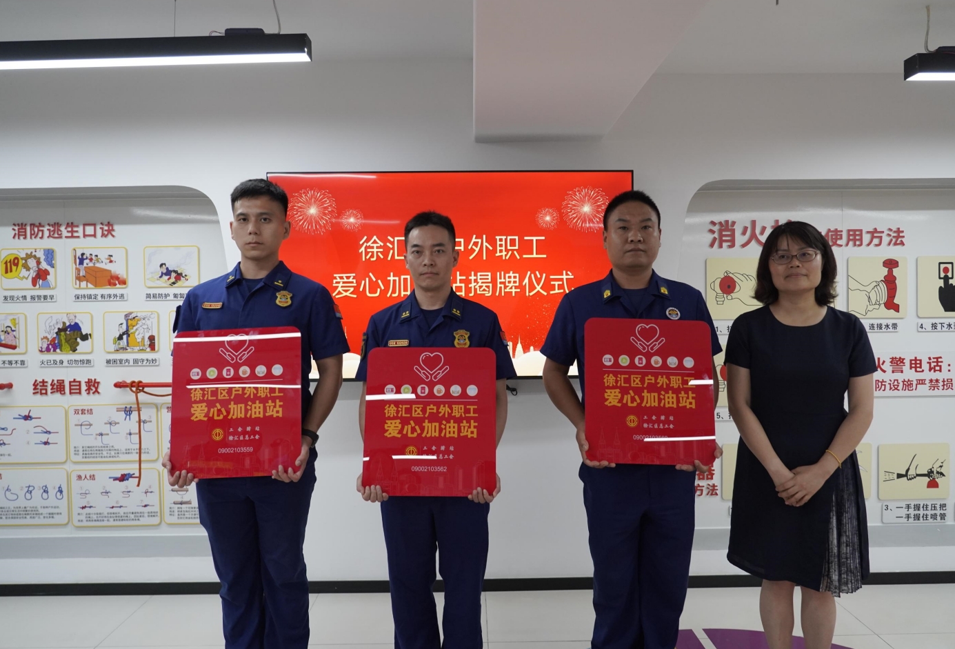 “这两周的时间,我们站点外面的冰柜已经送出了近20箱水!”斜土路街道小型消防站队员们很兴奋,自从徐汇区总工会携手区消防救援队伍共建户外职工爱心接力站后,受到了周边环卫、快递等户外工作者的热烈欢迎。今日,“斜土街道社区微型消防站户外职工爱心接力站”正式对外挂牌,上海市消防救援总队副总队长沈渭勇,徐汇区人大常委会副主任、区总工会主席朱伟红出席并为爱心接力站揭牌,这是上海首个建在微型消防站点的户外职工爱心接力站。