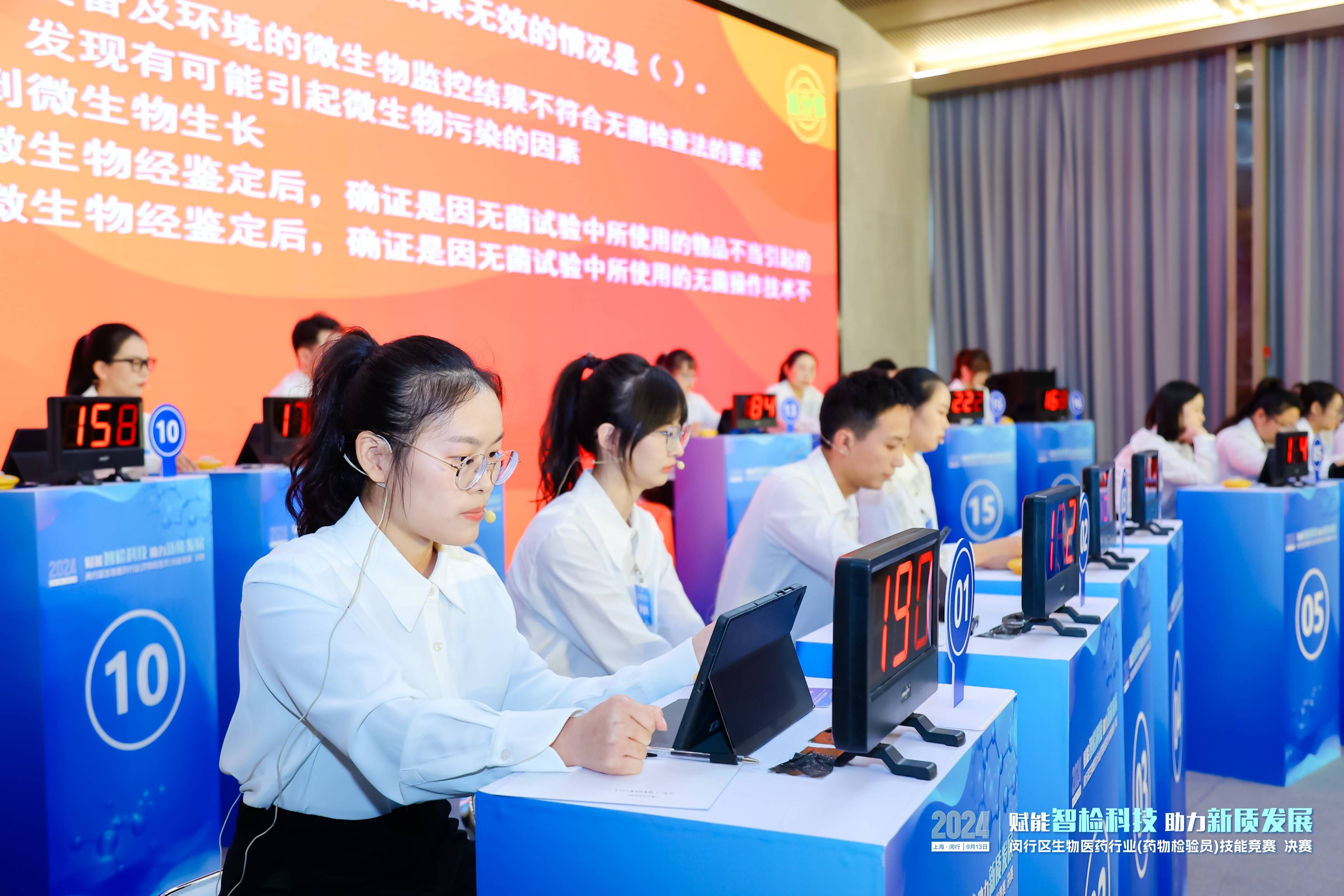 本次大赛是闵行职工技能系列竞赛的重要赛事,以“赋能智检科技,助力新质发展”为主题,分初赛和决赛两个阶段进行,历时两个多月。经职工报名、单位遴选、街镇和相关委局工会选拔推荐,25家企业和8家医疗单位的80位药物检验精英参加初赛,最终16名选手脱颖而出进入决赛。大赛委托上海市生物医药行业专家组围绕药物检验员三级(高级工)核心理论进行命题,决赛邀请了上海市医药学校副校长,生物技术制药系主任金慧担任裁判并作专家点评。