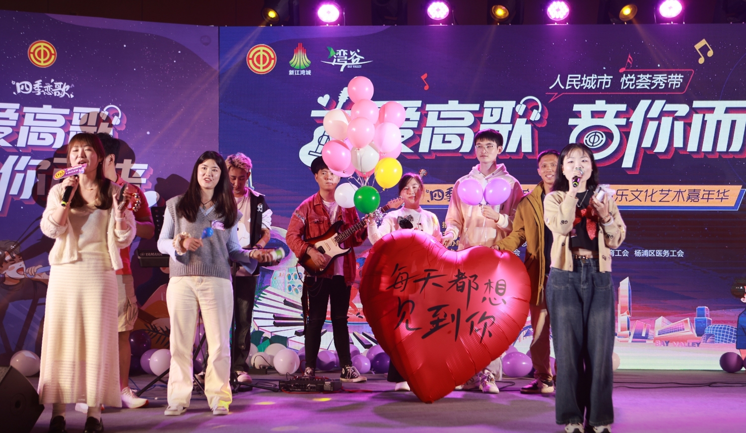 台下荧光棒闪烁,台上灯光交相辉映,青年男女热情登台,活力满满演绎流行金曲。如果不是后台大屏幕上“新城单身青年职工音乐文化艺术嘉年华活动”的字样,难以想象这竟是一场工会的青年职工交友活动。10月26日,杨浦区新江湾城街道“为爱高歌 ‘音’你而来”新城单身青年职工音乐文化艺术嘉年华活动在新江湾城湾谷科技园区内举行。活动吸引了来自教育系统、医疗系统、中大型企业、政府机关等百名青年参加,以音乐会友,为青年职工提供充分展示自我的平台。