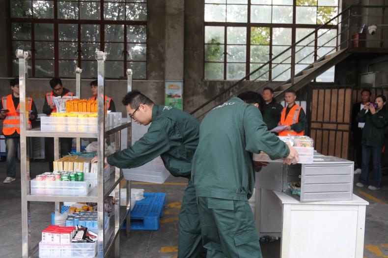 竞赛现场,数辆高矮不一、形状各异的特种车辆一字排开,摆满花生、泡面、饮料、饼干等机供品的货架整齐摆放。“选手就位,比赛开始!”随着裁判一声令下,两大项目同步开赛。记者看到,坐在特种车辆驾驶室内的参赛选手神情专注、沉着应战:在个人赛场地上,客梯车上的客梯紧密贴合飞机客舱门,行李牵引车拖着3个板车灵活、平稳地在障碍物间蛇形穿梭,飞机牵引车“载水绕弯”滴水不洒……一旁的团体赛场地同样火热,每组选手分工明确,配合默契,忙而不乱地对每架飞机上所需的标配机供品进行预分拣,对航后每架飞机上遗漏机供品进行拔舱回收。