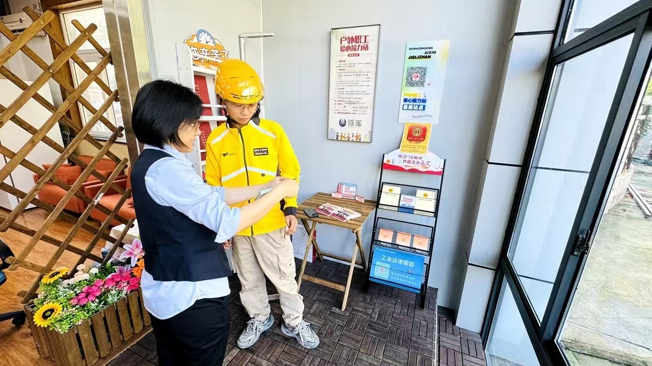 今年以来,嘉定区总工会与区司法局坚持把全民普法和守法作为依法治国的基础性工作,针对新就业形态劳动者、户外职工群体普遍存在文化程度不高、法治意识不强等问题,区总工会联合区司法局共同为新就业形态劳动者等群体在户外职工爱心接力站建起了“法治服务角”,进一步提高他们的法律素质和维权意识,促进行业的健康发展。