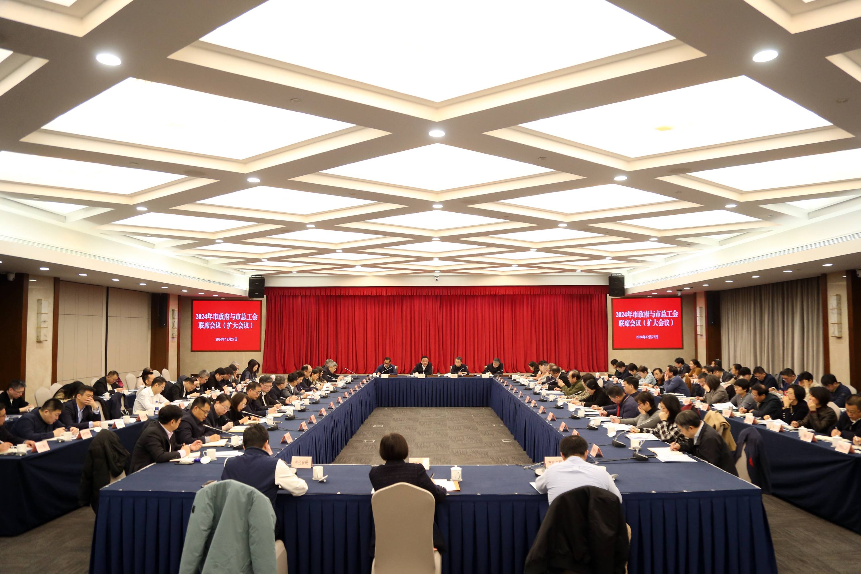 2024年市政府与市总工会联席会议(扩大会议)昨日在市政府召开。会议审议通过了关于共同推进“劳模工匠助企行”专项行动、关于共同推进“劳模工匠进校园”行动、关于进一步促进企业加强职工健康保护等五项议题。市委常委、副市长、市政府与工会联席会议协调小组组长华源,市人大常委会副主任、党组副书记,市总工会主席、市政府与工会联席会议协调小组组长郑钢淼等出席会议。