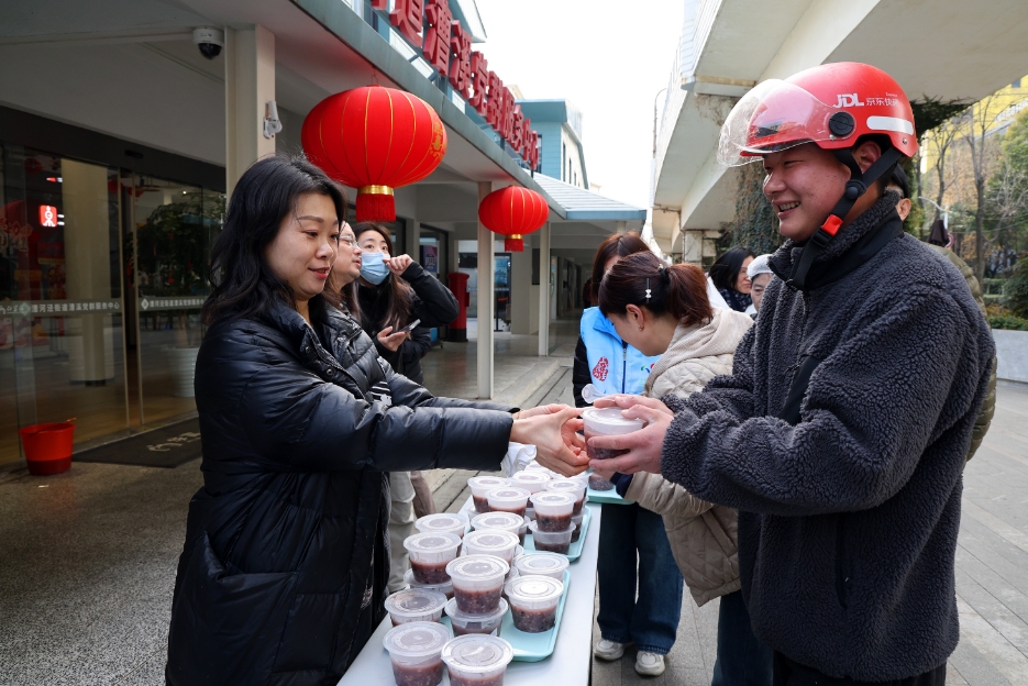 漕溪党群服务中心爱心加油站与华富社区食堂紧贴在同一片区,食堂烧粥,工会干部打包,这条流水线格外“有温度”。“拿到手里竟然是热的!”来自河南的顺丰快递员小梁在社区骑手对接群里收到活动消息后,专程赶到驿站,她的老家靠近河南北边,腊八节没有喝粥的习惯,“没想到能在上海喝一碗腊八粥,还是免费的!”