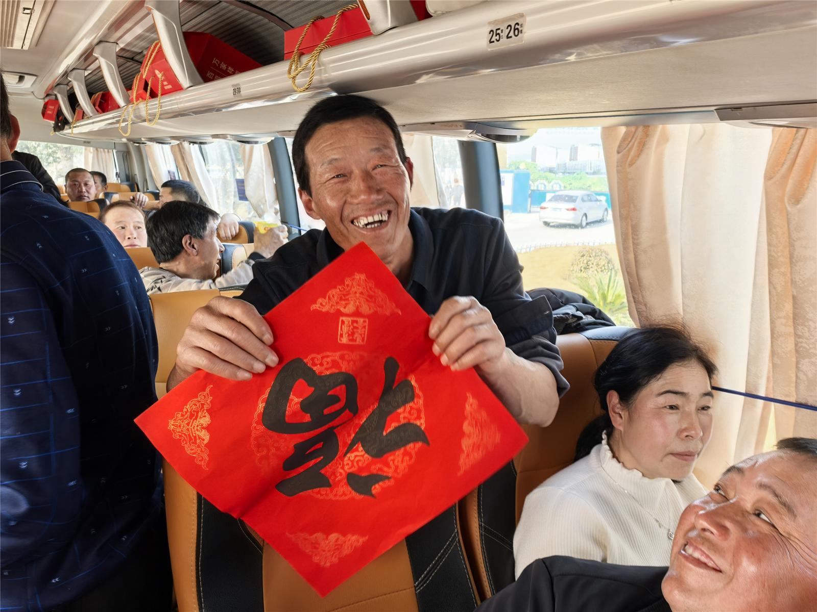 吴宗宸告诉记者,活动上他们还邀请书法家泼墨,书写了多张“一路平安”作品。他说:“等工友们正式返乡的时候,这些‘一路平安’将会被贴到大巴车上,美好的寓意,一定会护佑工友的返乡路更平安的。”除了寓意美好的福字和春联,返乡过程中,每辆大巴车上也都将配备急救设备和常用药品,确保在突发或意外情况下能及时处理救治。