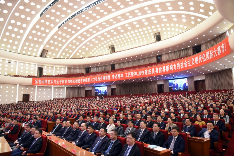市领导向全国劳动模范和先进工作者代表,上海市劳动模范、先进工作者和模范集体代表颁发荣誉证书和奖章奖牌,代表市委、市人大常委会、市政府、市政协,向为党的工运事业作出卓越贡献的革命先烈和老一辈工会领导者致以崇高敬意,向全市广大职工、各级工会组织和工会工作者致以诚挚问候,向受到表彰的劳动模范、先进工作者表示热烈祝贺。