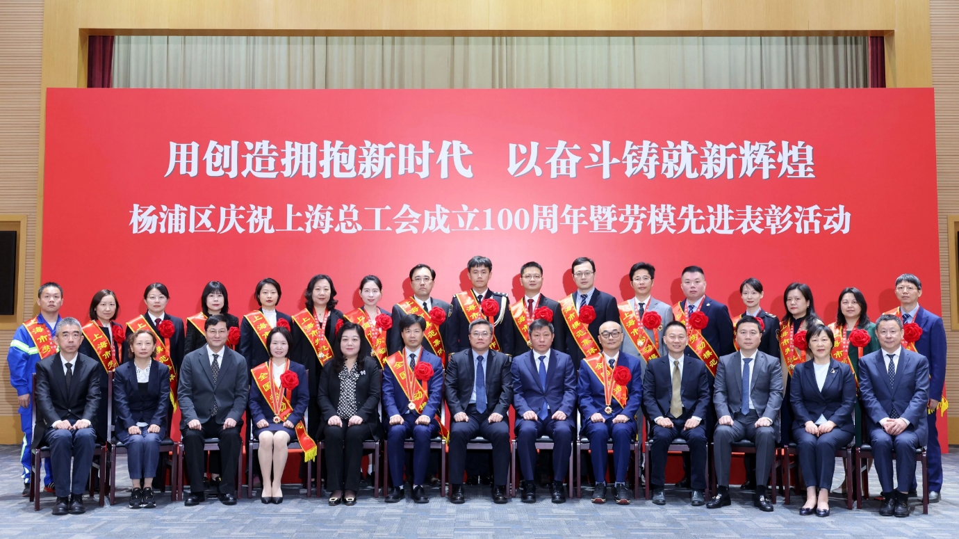 5月12日,杨浦区庆祝上海总工会成立100周年暨劳模先进表彰大会举行。