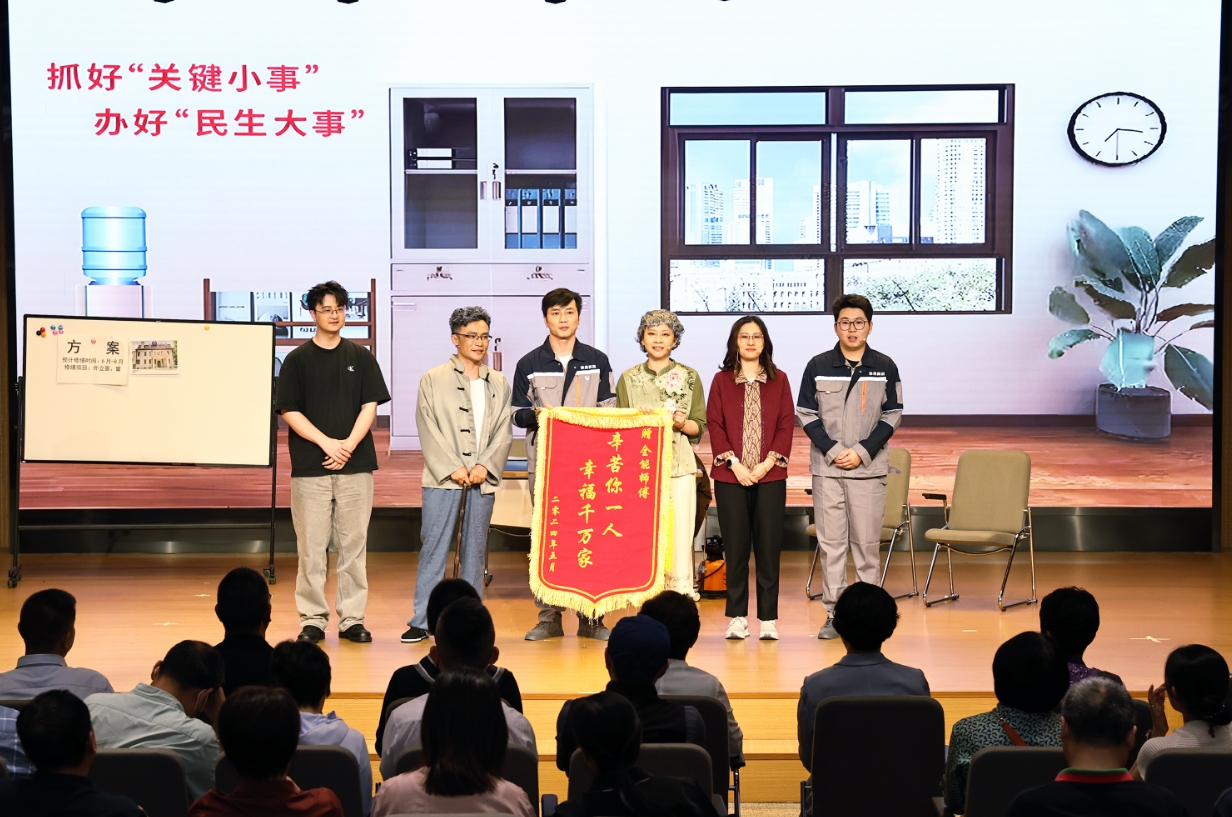 活动最后,上海市劳模程流风登场,他在本职岗位上忙于创新工作室的适老化改造创新实践,平日里积极参加劳模工匠进校园行动,舞台上,他带着孩子们重现“匠心模范寻访”活动的场景,为分享会收尾,画上句号。