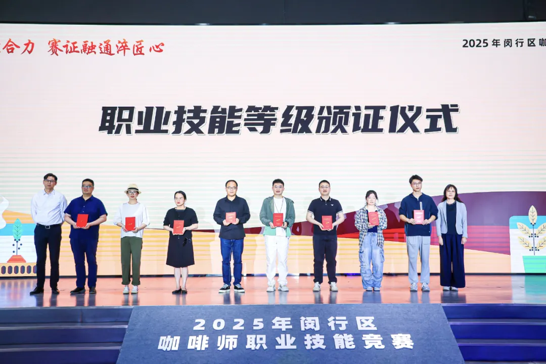 今年6月,“赋能产业聚合力·赛证融通淬匠心”2025年闵行区咖啡师技能竞赛在虹桥品汇如期举行。来自埃迪咖啡的咖啡师田小梦是参赛选手之一。对她来说,比赛的经历固然重要,更让她高兴的是,还可以拿到一张咖啡师高级工证书。当届比赛上,选手们经过选拔推荐、考证机构资格审核、理论测试初赛和实操考核复赛,都可拿到咖啡师高级工证书。