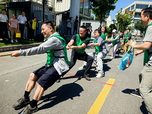 比赛现场高潮迭起,参赛队伍在拔河团体赛和羽毛球混双项目中同场竞技,奋力争先。最终,第五街区代表队凭借出色协作与坚实储备,连夺两项冠军,成为本届体育节最大赢家。来自街区的行业达人、网格志愿者、新业态职工及周边商户等多元主体,在赛场上并肩作战,充分展现了基层治理中“力量融合、共治共赢”的生动图景。