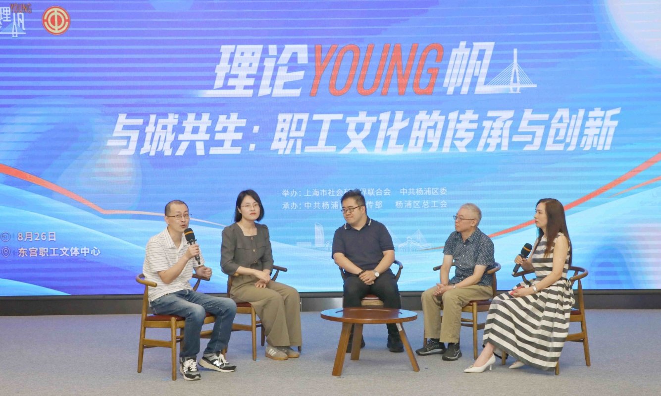 8月26日,“理润申城·杨浦︱理论Young帆”第二期活动在杨浦区东宫职工文体中心举行。一场融合文艺与理论风格的“工会大思政课”走进杨浦,专家学者依托学科优势让理论宣传 “活” 起来,职工文化正逐渐成为思政教育的鲜活载体。活动由上海市社会科学界联合会、中共杨浦区委举办,杨浦区委宣传部、杨浦区总工会承办,聚焦“与城共生:职工文化的传承与创新”主题,邀请多位专家学者与基层工会工作者展开深度对话。