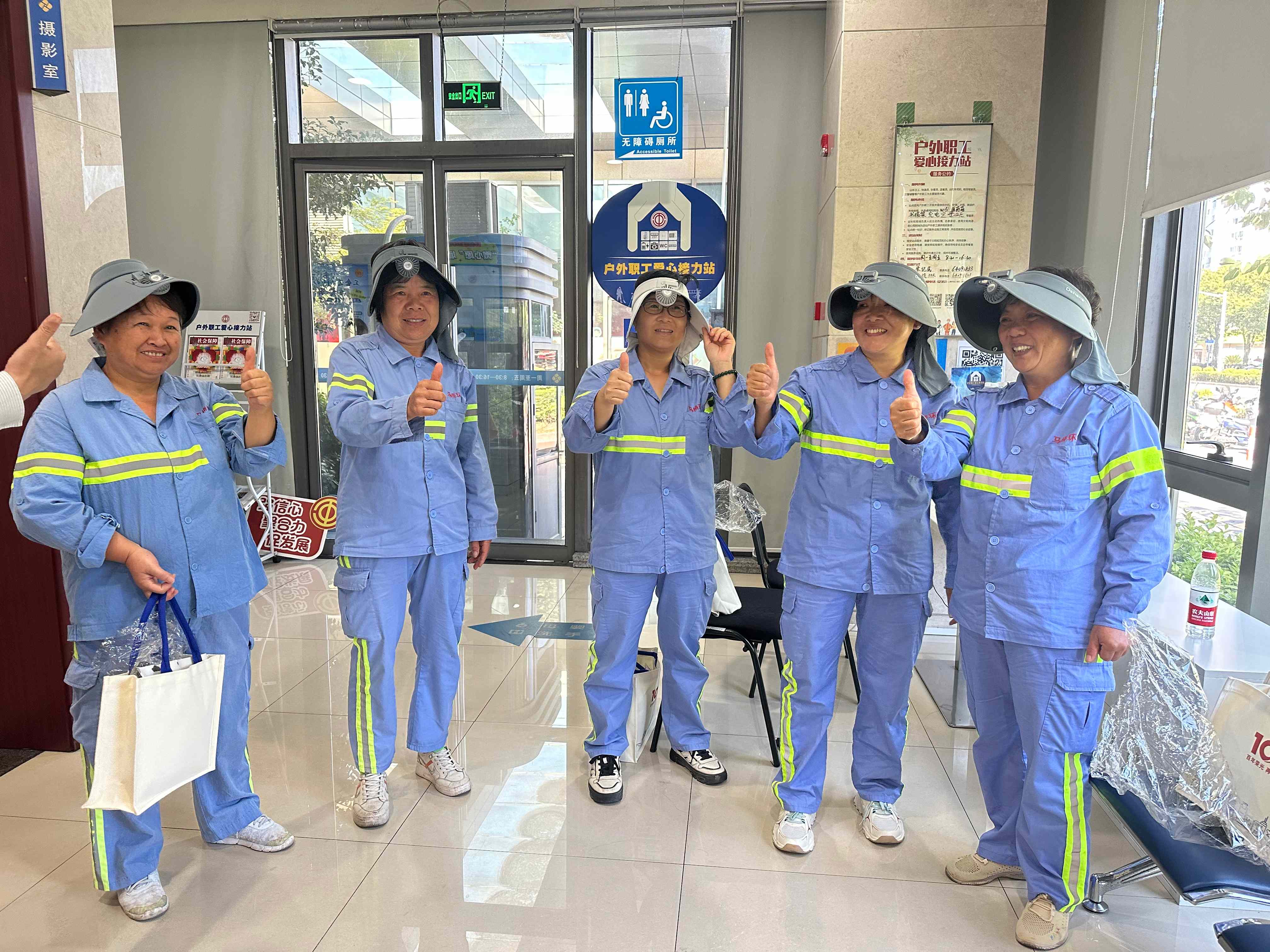 8月28日的午后,位于马桥镇的户外职工爱心接力站里,正在休息的上海马桥环卫综合服务有限公司的环卫职工王阿姨格外欣喜,来自工会的关怀慰问送到了她和同事手上。“谢谢工会能想到我们,这次送的电风扇帽特别实用,点赞!”