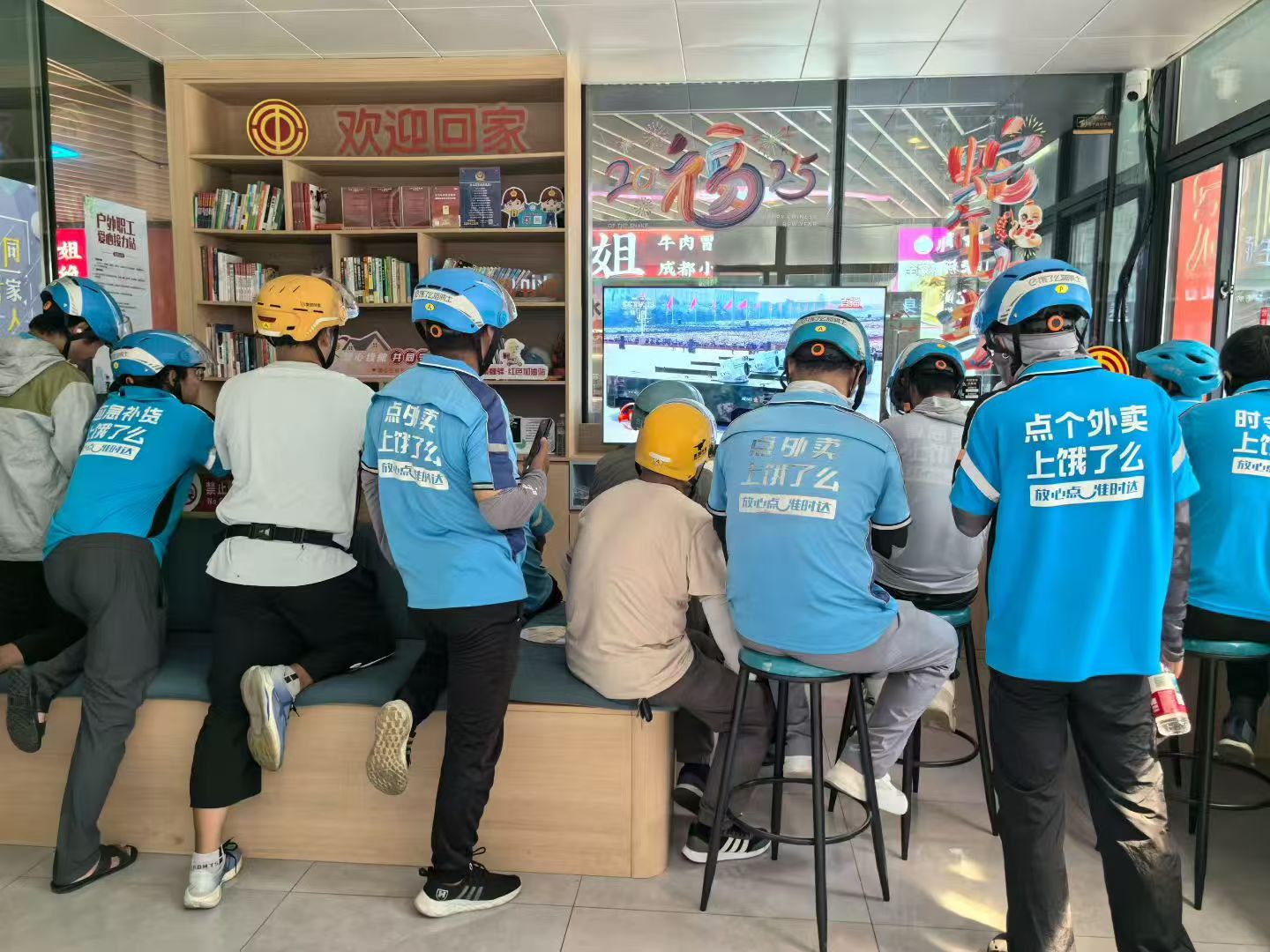 位于浦东新区唐镇的职工服务阵地工会驿站和职工工间休息室里,一些新就业形态劳动者表示,“今天在工会驿站和兄弟们一起观看了阅兵仪式,我心里满是骄傲和自豪,这就是国家的底气!”