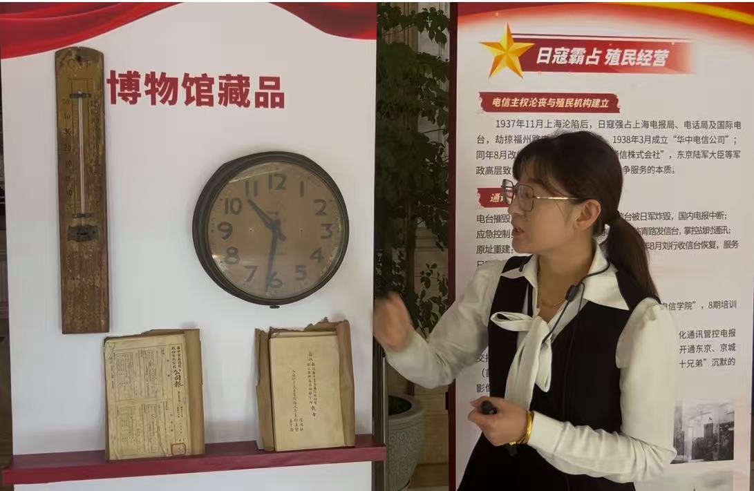1937年,上海沦陷。日军劫走福州路电报局设备,成立“华中电信公司”,随后改组为“华中电气通信株式会社”,长达八年时间。展厅一角,一本泛黄的《日文号簿》静静陈列在玻璃柜中。上海电信博物馆工作人员周斌告诉记者:“当时日本人把中国称作‘支那’,直接印在号簿上。放在今天看,这样的字眼格外刺目,也正说明了那段殖民统治的屈辱。”