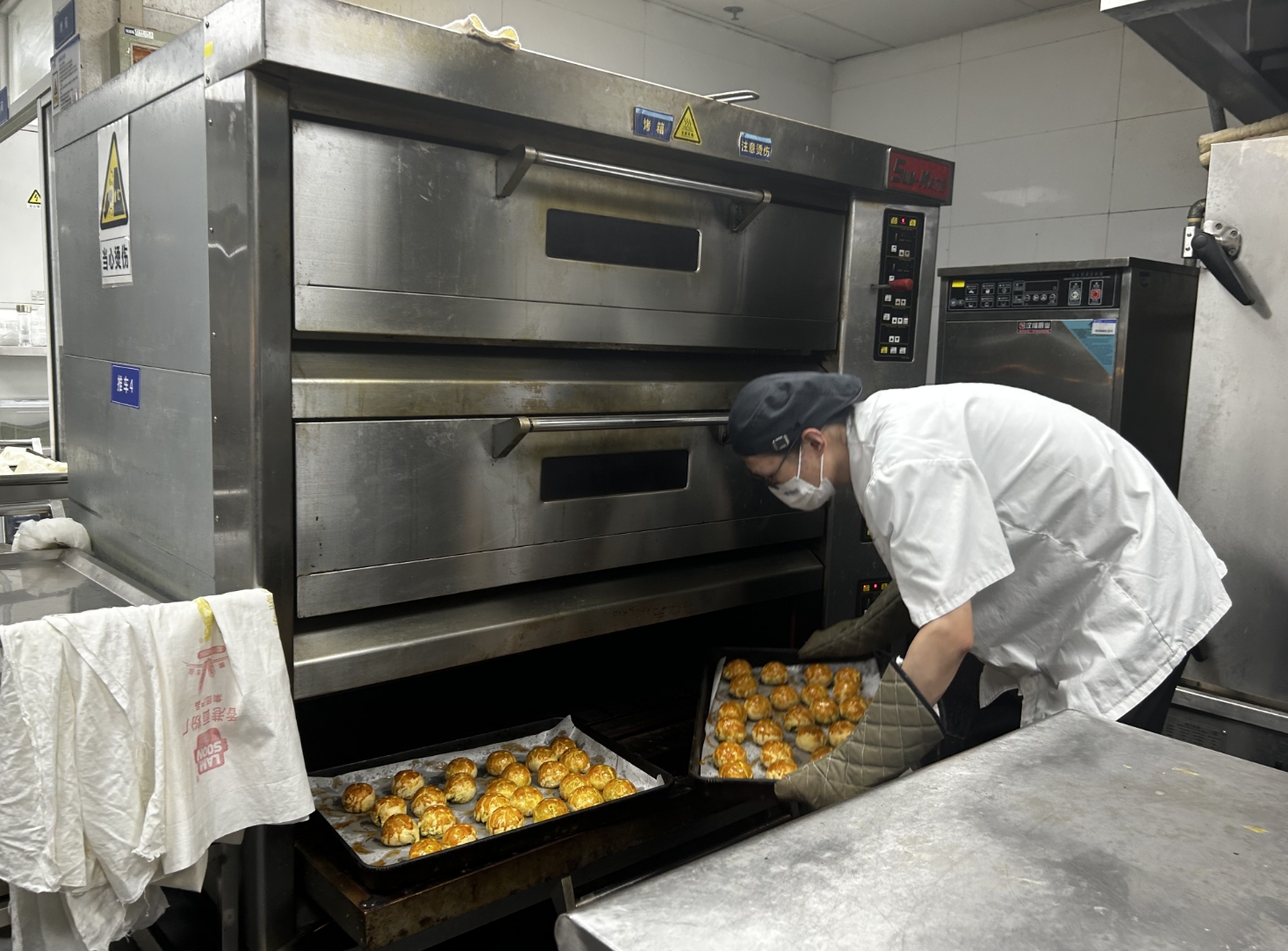 “最早是职工念叨,说外面买的月饼不好吃,想吃现做的。”上海三菱电梯职工食堂负责人孙雯说,食堂师傅们记在心里,当年便凑在一起琢磨配方,从和面到烘烤反复调试,终于烤出第一炉月饼。没想到职工们格外喜欢,从此成了每年中秋的念想,至今已有20多年的历史。